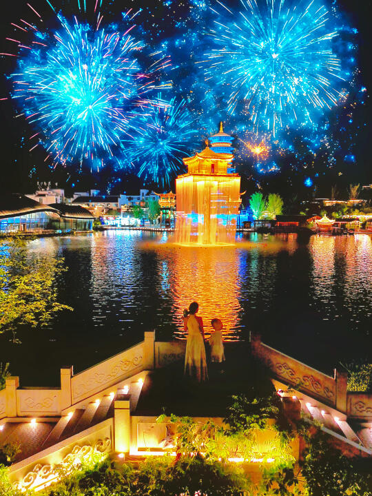 看完绝美的烟花表演,这时候景区的人也少了很多,可以去各个好看的机位拍拍美照!灯光10:30关闭,大家记得抓紧时间