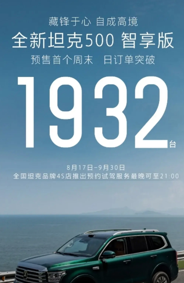 坦克500在预售的首个周末,单日订单就接近2000辆了,这热度着实非同一般。