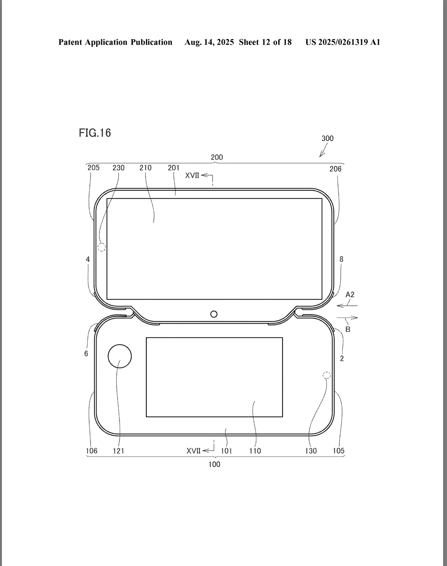 任天堂今年6月推出了新主机Switch 2,虽然打破过去销售记录,但除了“C键”的“Game Chat”新鲜外,其余变化并不大,官方也在开发者访谈中承认这一代偏向保守。而近日,任天堂在美国的一项“双屏幕”专利更新,让人想起Switch 2发售前的猜测。 在Switch 2发售前,讨论度最高的莫过于2023年末任天堂的一份双屏幕掌机专利,虽然外观与NDS、3DS相似,但最大亮点是第二个屏幕可拆下来,通过无线方式连结同一掌机本体玩游戏,第二屏幕还能变成类似Wii U的GamePad。这让当时许多人猜想,这或许就是Switch 2的创新专利。不过随着实机的公开,上述猜测就此作罢。 但最近一项任天堂于8月14日在美国更新的专利,又再度引发玩家热议。根据网友在美国专利局的发现,这项专利像是能在主机下方额外安装一个屏幕。专利图中呈现的是翻盖式设计,上方屏幕可连结下方装置,并且有触控功能,下方屏幕同样配有按钮可操作。当然也有网友推测,这很可能不是Switch 2,而是其他独立设备。