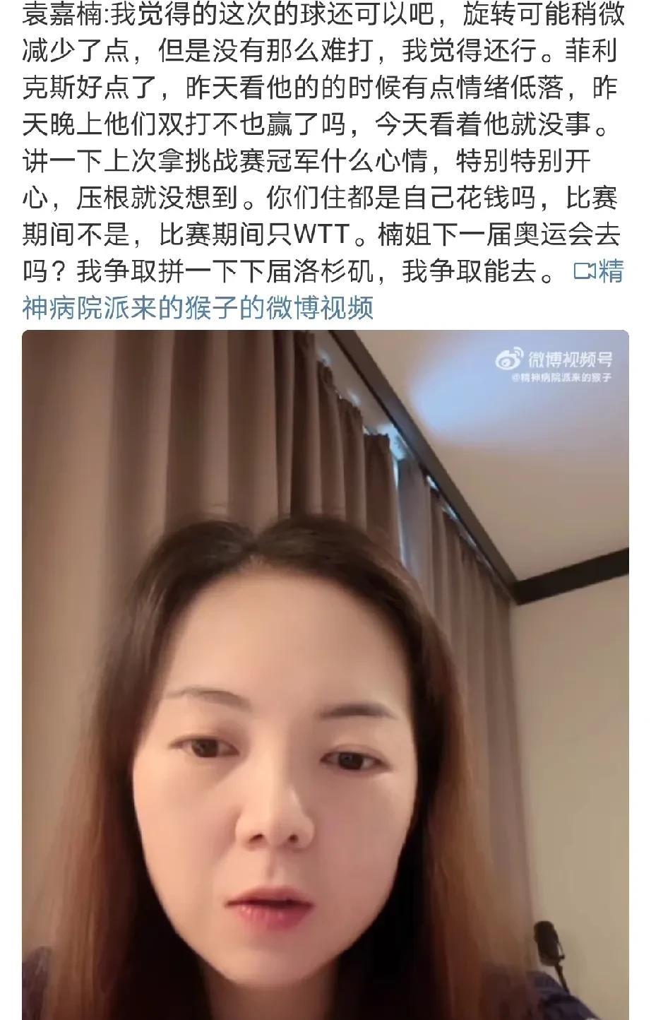 袁嘉楠:小布现在看着没事儿。 横滨冠军赛小勒布伦以2分优势决胜局赢了张禹珍,这次张禹珍以2分优势胜了小布,说明他俩旗鼓相当,但是小布更年轻,好好训练,有机会再拼回来。这次瑞典大满贯,小布也一轮游了,孩子在赛后采访中也带着哭腔,赛后肯定哭了,他说本来领先比赛,他打的很好,但是后面张禹珍改变了发球,打起来很艰难。 这不昨天袁嘉楠直播了,她也是法国队的,大家问小布现在怎么样,袁嘉楠说刚输了比赛时情绪看着很低落,这不男双赢了,现在看起来没事儿了。小布现在成长了,人也稳重了很多。 对于今晚和莎莎的女单比赛,袁嘉楠说和莎莎打,享受比赛就好。站在赛场上,大家都想赢,所以全力以赴发挥出自己最好的水平就好。