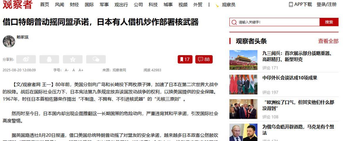 发展核武器?日本的狼子野心藏都不藏了! 日本这是彻底忘了挨原子弹的疼了?一群政客上蹿下跳,又是喊着让美国把核弹部署过来,又是吹嘘 “半年就能造出核弹”,听得人拳头都硬了! 他们可是唯一被核爆过的国家,为了那点所谓的 “安全”,连祖宗的血泪教训都能抛到一边,这心也太狠了! 说穿了,日本早就憋着搞核武的坏心思,47 吨分离钚存着,够造几百枚核弹头,他们自己也大言不惭说 “最快半年就能搞出来”。 这些年嘴上喊着 “核裁军”,背地里偷偷攒料,现在总算找到由头蹦出来了,哪是什么临时起意? 带头作妖的是右翼参议员松川瑠衣,她拿特朗普当挡箭牌,说 “不能指望美国永远保护”,得搞 “B 计划”,说白了就是想撕毁 “无核三原则”。 这借口也太拙劣了 —— 美国靠不靠谱,跟你搞核弹根本是两码事,当年佐藤荣作靠 “无核三原则” 拿过诺贝尔和平奖,现在这群人是想把前辈的脸踩在脚下? 更让人窝火的是,他们还跟美国暗通款曲,搞什么 “延伸威慑磋商”,其实就是商量怎么配合美军用核弹;甚至想学北约搞 “核共享”,让美国把核弹部署到日本。 德国那是战败国没办法,你日本凑什么热闹? 他们折腾来折腾去,就是想挣脱战后秩序的枷锁,和平宪法捆着进攻性武器,“无核三原则” 堵着核大门,可日本右翼从来没安分过。 借着美国 “安全承诺松动” 的由头,就想把军事正常化的最后障碍清掉,真让他们成了,东亚这片好不容易安稳的地方,非得被搅得鸡飞狗跳不可。 中国当然不能看着不管,外交部早放话了,日本作为无核国家,必须履行国际义务,别打核弹的歪主意。 国防部也敲了警钟,说他们搞 “核共享” 极其危险,咱们是被日本侵略过的国家,最清楚这民族要是军国主义抬头有多吓人。 当年拿常规武器就敢横扫亚洲,现在有了核弹,还不得翻了天? 光警告不够,还得有真动作,东风导弹、核潜艇这些 “家伙事儿” 得更厉害,让日本知道,敢碰核弹红线,绝对没好下场。 咱们必须瞪大眼睛盯着,绝不能让历史悲剧重演。日本要是真敢迈那步,中国第一个不答应 —— 不信就试试!