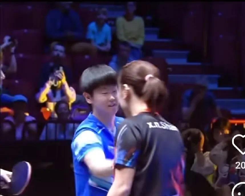 邱贻可也来看海产的女双比赛。 今天是孙颖莎/王曼昱女双首秀,俩人穿了蓝色比赛服,真好看。虽然是和吴咏琳/单晓娜首次交手,但是一个世一一个世二,在实力上就碾压对手了,两个人是3-0战胜单晓娜/吴咏琳,晋级女双8强,看到两个人的状态都不错哦。 这比赛打的真精彩,有几个球都把单晓娜打的笑了,质量高她没拉上。看到不管是在比赛中还是在局间,莎莎和曼昱都有一直在沟通,马琳也一直在给战术,俩人有商有量,轻松拿下首场比赛。导播把镜头切到观众席,看到邱导也在看比赛,就是这灯光,看着邱导好黑啊。 看得出来莎莎今天打开心了,她边收拾球拍边和曼昱复盘,不像上一轮和汉娜高达的女单比赛,虽然莎莎赢了,但是因为没有接好高达的发球,复盘时气鼓鼓的。 接下来莎莎还有一场女单的比赛,她还要去准备比赛,应该采访就是王曼昱一个人了,俩人现在再配女双,默契还在。莎莎继续加油!