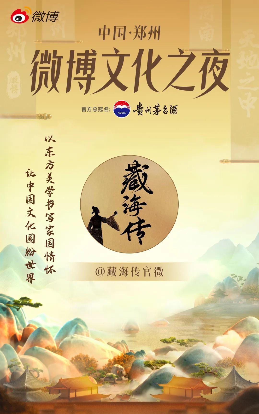 哇偶!藏海传又要去郑州的微博文化之夜了,这次不知道是谁过去,离藏海传在它泰拿到第一个奖过去没有几天,这就有新活动了,以东方美学书写家国情怀,让中国文化圈粉世界,和我们藏海传再搭不过了,希望我们藏海传能有所收获