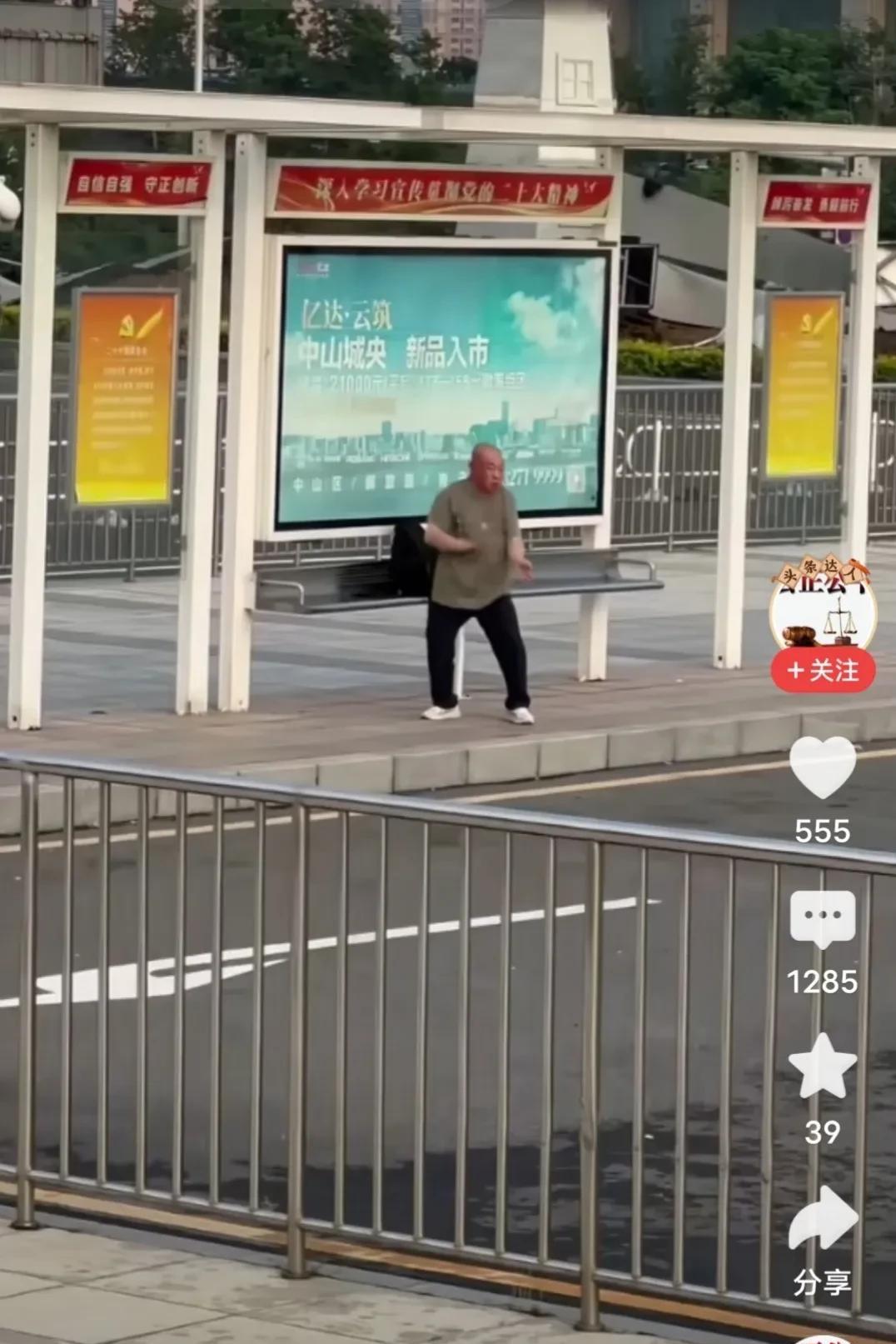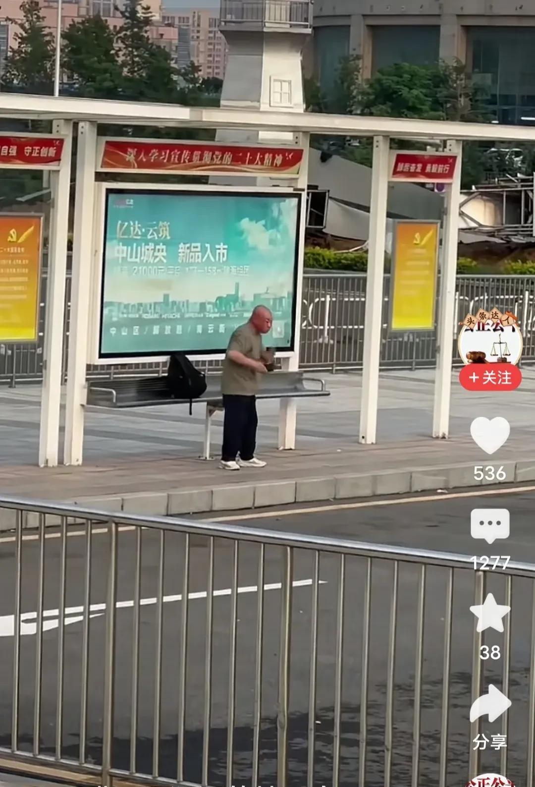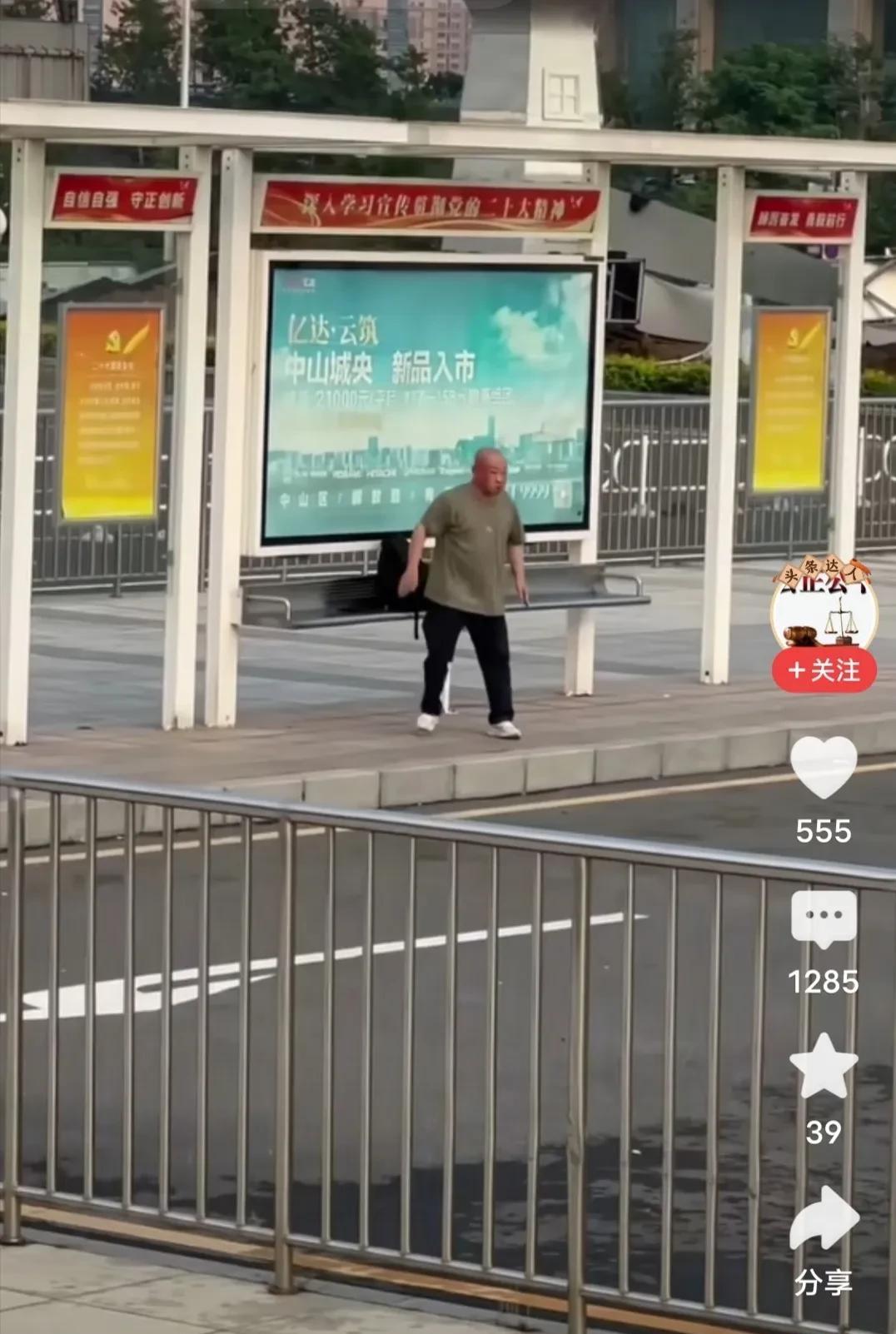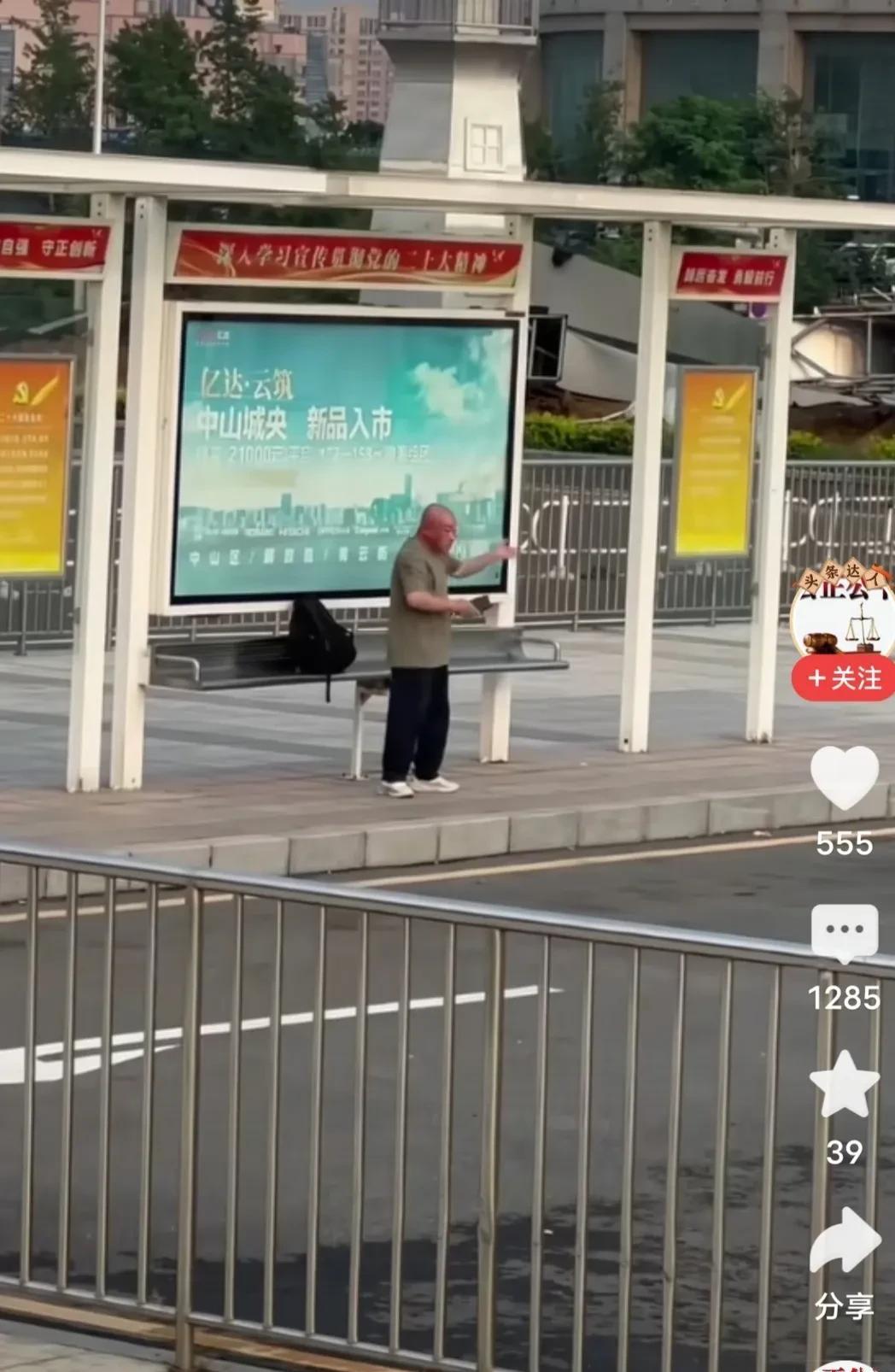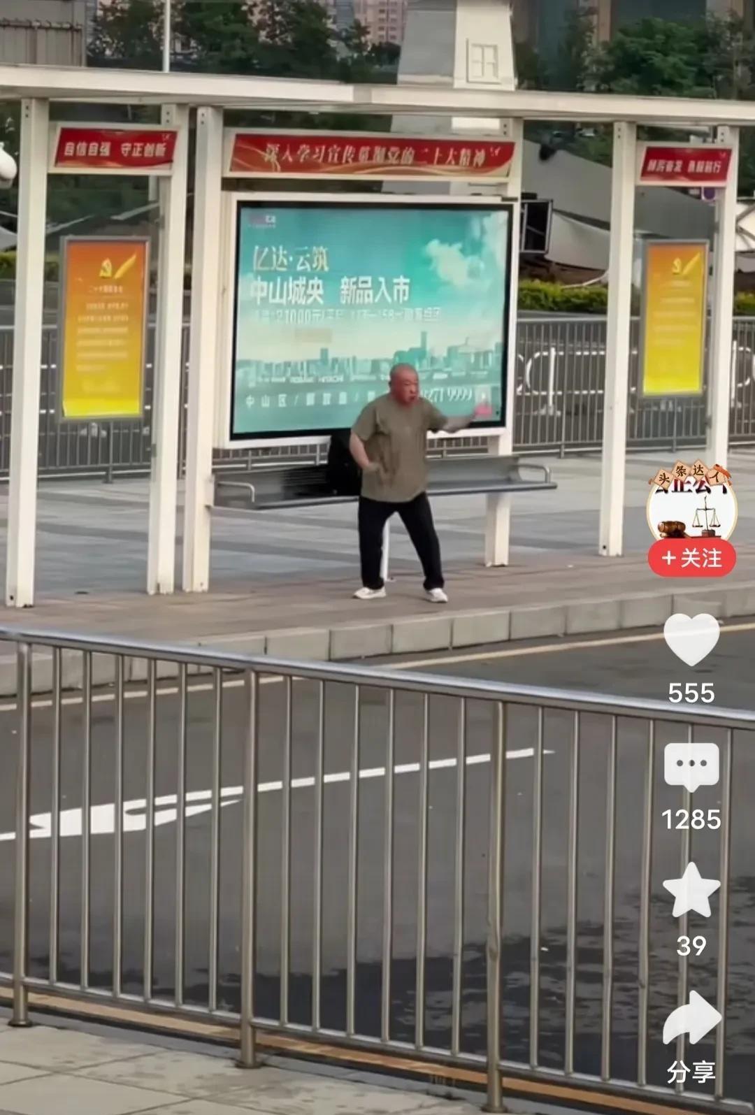 光头大叔使劲扇自己耳光,而且还是左右开弓。他这是遇到啥难过的坎了? 这是在城市的