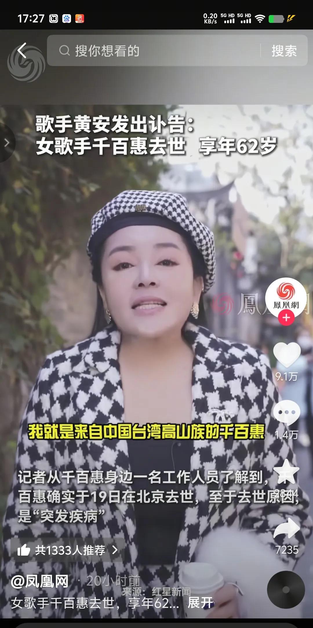 千百惠的离世再一次告诉我们,人不是老了才会死,而是随时都会死。享年62岁,突发疾