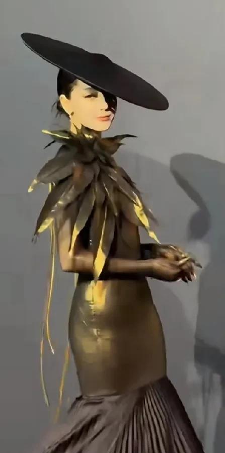 迪丽热巴的侧颜线条真的太优越了!这次的反派造型气场全开,腹部的紧身设计更显霸气,