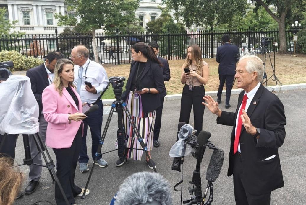 “和平之路贯穿新德里。印度关税将于8月27日翻倍,”白宫贸易顾问彼得·纳瓦罗 特朗普政府贸易顾问彼得·纳瓦罗在白宫告诉记者,他预计8月27日对印度的关税将按计划提高到50%。