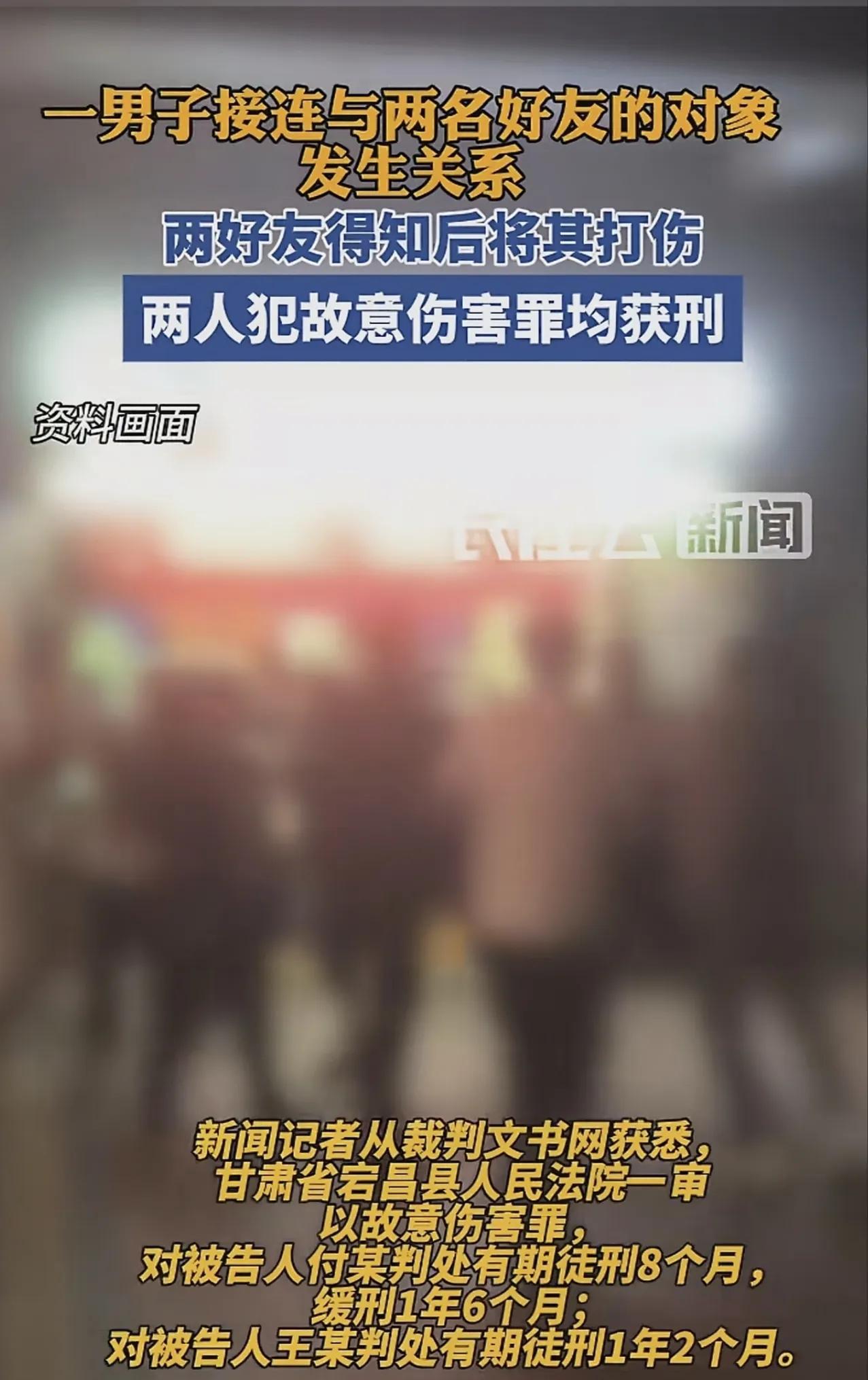 甘肃宕昌,一男子有2个好哥们,他跟其中一哥们的妻子发生关系后,没多久,又给另一个哥们戴了帽子,和她女友暗渡陈仓,朋友妻不可欺,2个哥们知道后,顿时火冒三丈,联合起来把男子教训了一顿,把他打成轻伤,万万没想到,插足别人家庭和感情的没事,2个哥们作为受害者,却被判了刑。 8月21日,据长江云新闻报道,赵某,付某和王某,2022年相识,因为情投意合,三个人成为好哥们,经常隔三岔五的小聚,推杯换盏,畅谈人生。 可知人知面不知心,赵某内心是个没底线的人,都说朋友妻不可欺,但赵某却被付某的妻子迷住。 让赵某欣喜若狂的是,他发现付某的妻子跟他郎情妾意,正中他下怀,于是,在2024年的一天,赵某突破底线,跟付某妻子发生关系。 可能尝到甜头了,赵某又把目标锁定在另一哥们王某女友身上,很快,他也达成所愿,成功的把王某女友搞到手。 俗话说,没有不透风的墙,当付某和王某发现,他们被爱情和友情同时背叛,那滋味外人无法感同身受。 两个人气血上涌,他们真心实意对待的哥们,竟然做出这样的事,他们攥紧拳头,找到赵某,不由分说把他教训一顿,出了口恶气。 赵某被打成轻伤,付某和王某,也为他们的冲动付出代价,以故意伤害罪,付某被判处有期徒刑8个月,缓期1年6个月执行,而王某被判处有期徒刑1年2个月。 有人说,交友不慎,朋友妻不可欺,这人真是欠收拾,只是这两人缺少了谋略。为人太不厚道了!而两个好友的做法,就是冲动犯罪了。得不偿失,把自己栽进去了。人家女的都说防火防贼防闺蜜,男的也一样啊。这也忒不是东西了。 第一句话,道德是道德,法律是法律。第二句话,女人不是男人的附庸,劝男人不要太在意女人的归属。 该事件认为这暴露了人际交往中“边界感缺失”的问题:一方面是涉事男子无视友情边界,另一方面是两名好友混淆了“道德批判”与“法律行为”的边界。 这件是一次典型的“法律教育案例”,它提醒所有人,即使面对他人的道德过错,也不能突破法律底线,否则“正义没实现,自己先成了违法者”;同时也警示人际交往中,需坚守诚信与尊重,避免因私人情感纠纷引发更严重的后果。 既解决不了问题,更毁了自己的人生。遇到情感背叛,再气愤也该守住法律底线。 背叛友情与爱情的行为,既违背道德底线,也会摧毁信任根基,实在不可取。遇到情感纠葛,应坚守理智与良知,及时止步;朋友间若生矛盾,需冷静沟通,切勿用暴力解决问题。珍惜真情、守住底线,才能让人际关系更温暖,生活更和谐。 《刑法》第234条规定:故意伤害他人身体的,处三年以下有期徒刑、拘役或者管制。犯前款罪,致人重伤的,处三年以上十年以下有期徒刑;致人死亡或者以特别残忍手段致人重伤造成严重残疾的,处十年以上有期徒刑、无期徒刑或者死刑。 付某和王某因赵某与两人的配偶及女友发生不正当关系,持棒球棍和拳脚殴打赵某致其轻伤。 根据司法鉴定结论轻伤,及伤害手段,其行为已符合《刑法》第234条“故意伤害他人身体”的构成要件,故法院以故意伤害罪定罪量刑。 付某因参与程度较轻且可能具备缓刑条件,如认罪悔罪、赔偿谅解等,被判处缓刑;王某因直接实施暴力且情节较重,被判处实刑。 《民法典》第1177条规定:民事权利受侵害时,权利人原则上应通过公 权 力救济,禁止以暴 力等非法方式实施私力救济。 尽管赵某的行为严重违背社会道德,但其行为在法律上并未直接构成犯罪。 付某和王某因情感愤怒采取暴 力手段报复,突破了法律对公民人身权利的保护边界。道德过错不能成为实施暴 力的正当理由。 赵某的行为违背公序良俗,但现行法律没将这种行为入罪;付某、王某的暴 力行为则直接触犯刑法。 法院以行为结果轻伤,和犯罪手段为核心量刑依据,不因受害方存在道德过错而减轻施暴者的刑责。 若认为赵某侵犯配偶权,可依据《民法典》第1091条主张离婚损害赔偿,或通过民事侵权之诉索赔,而非诉诸暴 力。 对情感纠纷应通过合法途径解决,避免因情绪失控酿成“双输”后果。 对此,你怎么看? 关注@灋律盐究员 学法辩是非,用法止纷争。