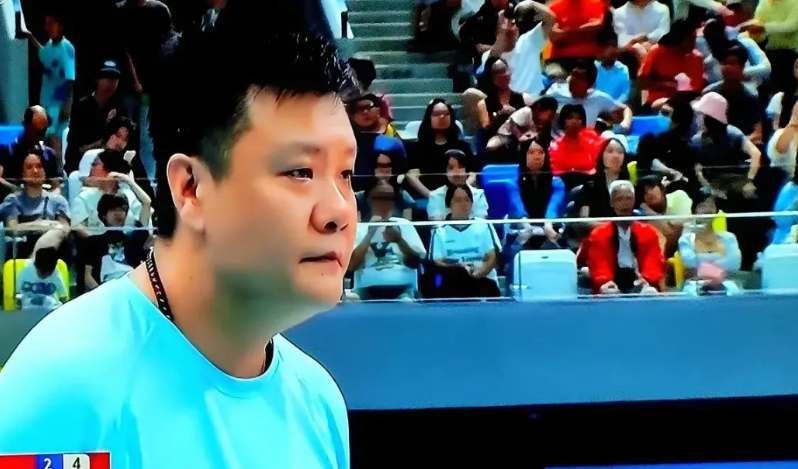 那一刻,王之腾指导的眼里是噙着泪水的! 主裁判还在焦急地等待着吹响发球哨音,可上