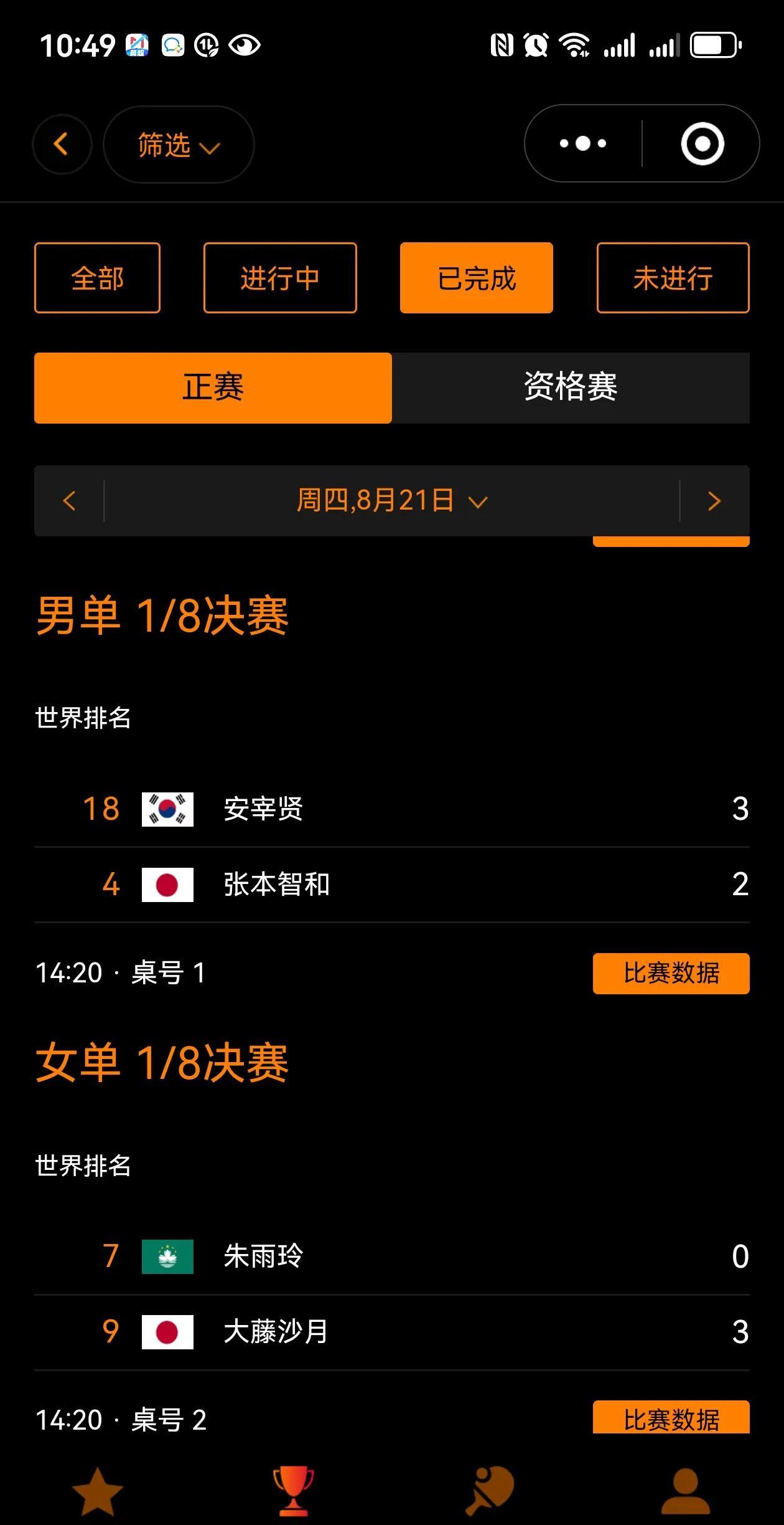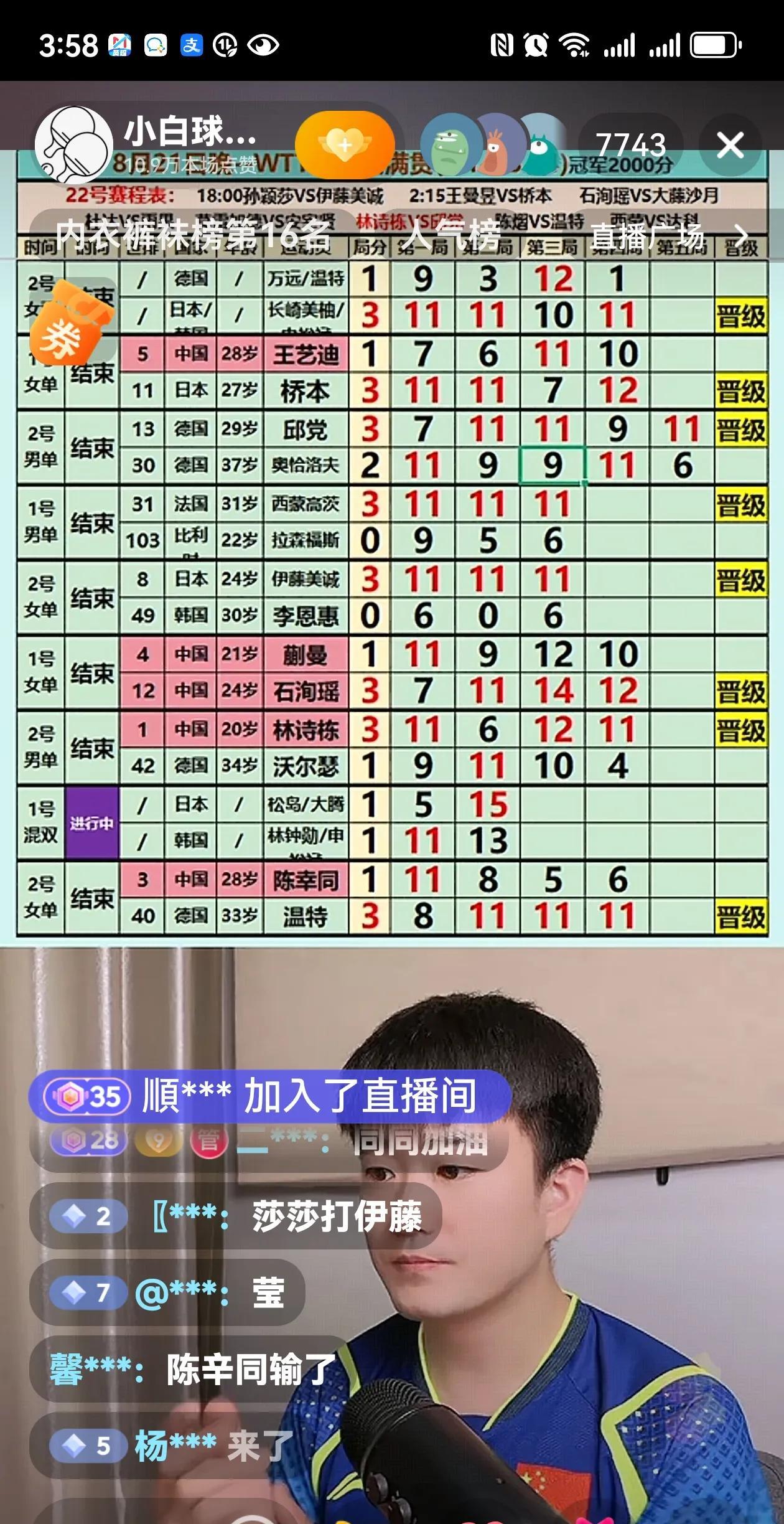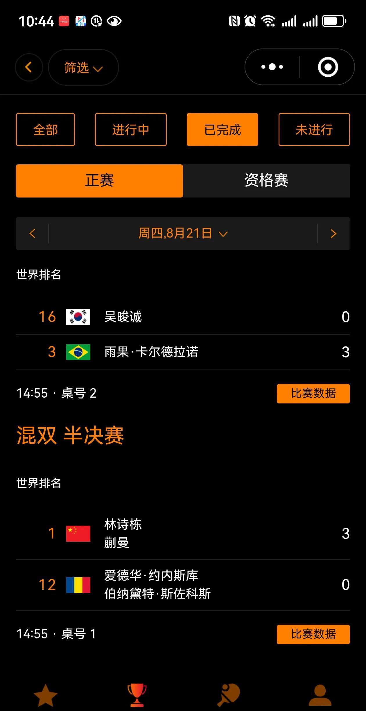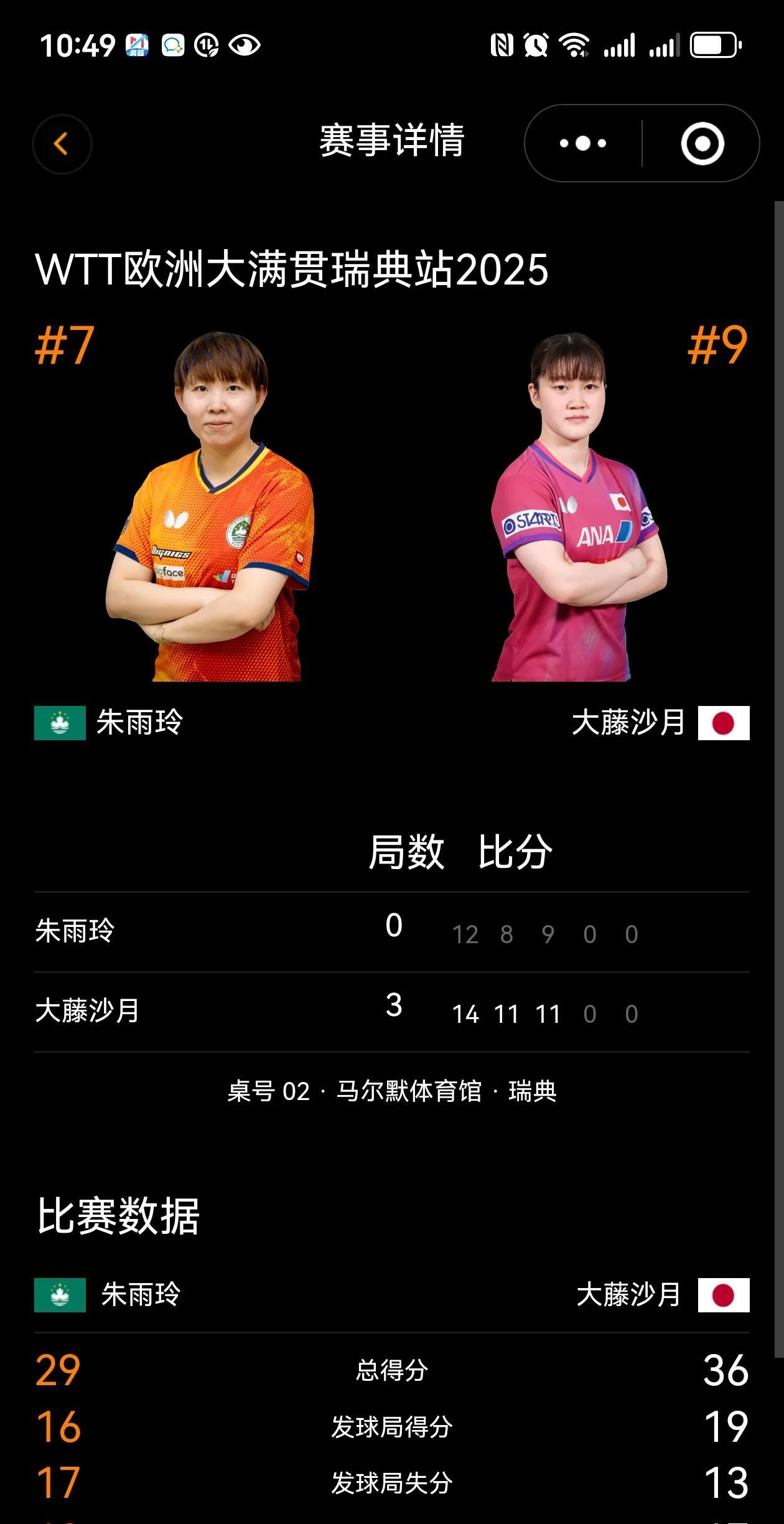 WTT欧洲大满贯瑞典站(8.14-24)当地21日午场,混双动漫组合,晋级决赛;海产组合晋级四强!王艺迪1:3桥本帆乃香、蒯曼1:3石洵瑶、陈幸同1:3德国温特,朱雨玲0:3大藤沙月,无缘八强。 #wtt瑞典站#