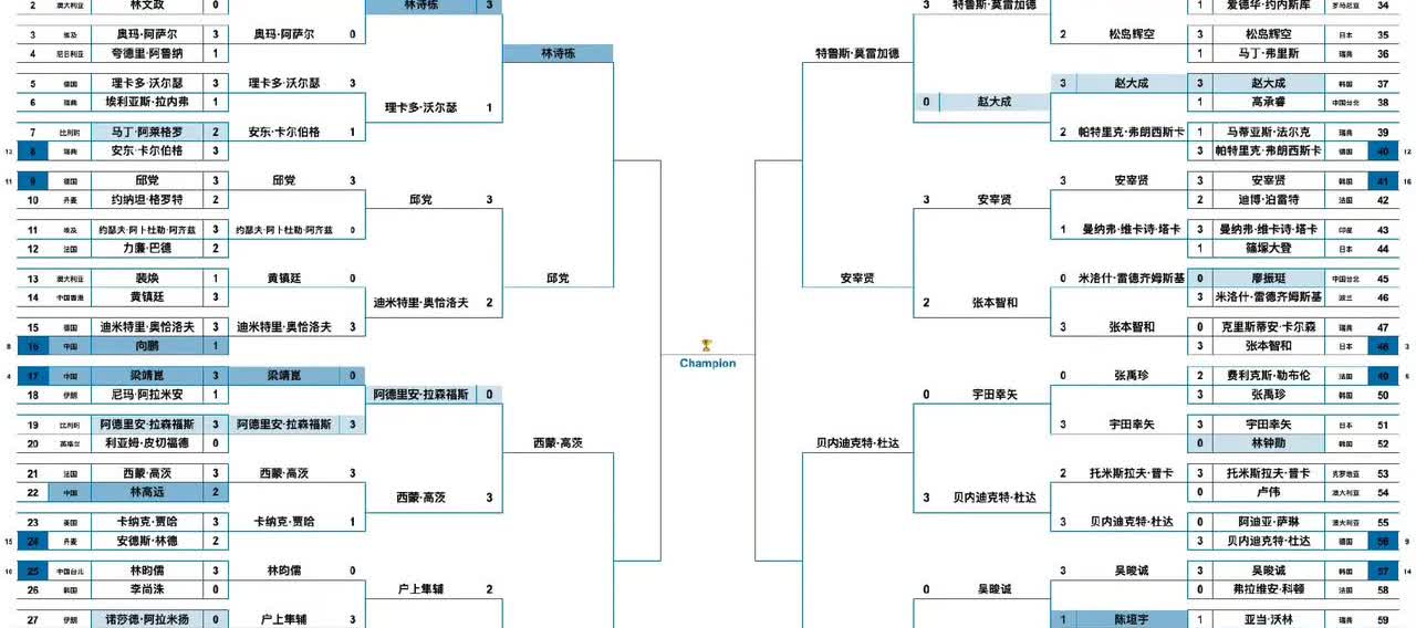 男单八强里没有日本选手[大笑]! WTT欧洲大满贯瑞典站男单八强如图所示。