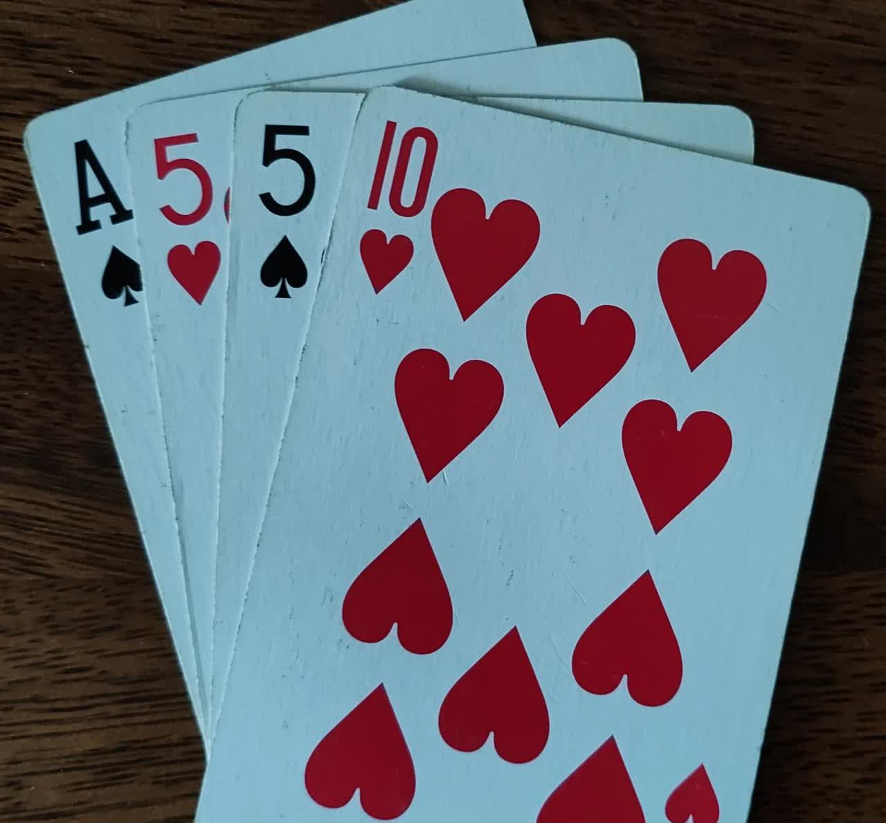 24点益智小游戏,废话不说直奔主题。就两个基本条件:随机发牌;基本加减乘除规则。 今晚第一副牌3 4 5 9 1.简单粗暴,有3,快速看到8,9-1 2.同理1,13-5 3.同理1,4+4 4.有4,能否整出6?15-9 没有了? 第二副牌1 5 5 10 1.10-5得多少?很容易了… 分数也搞不定了,没有了?