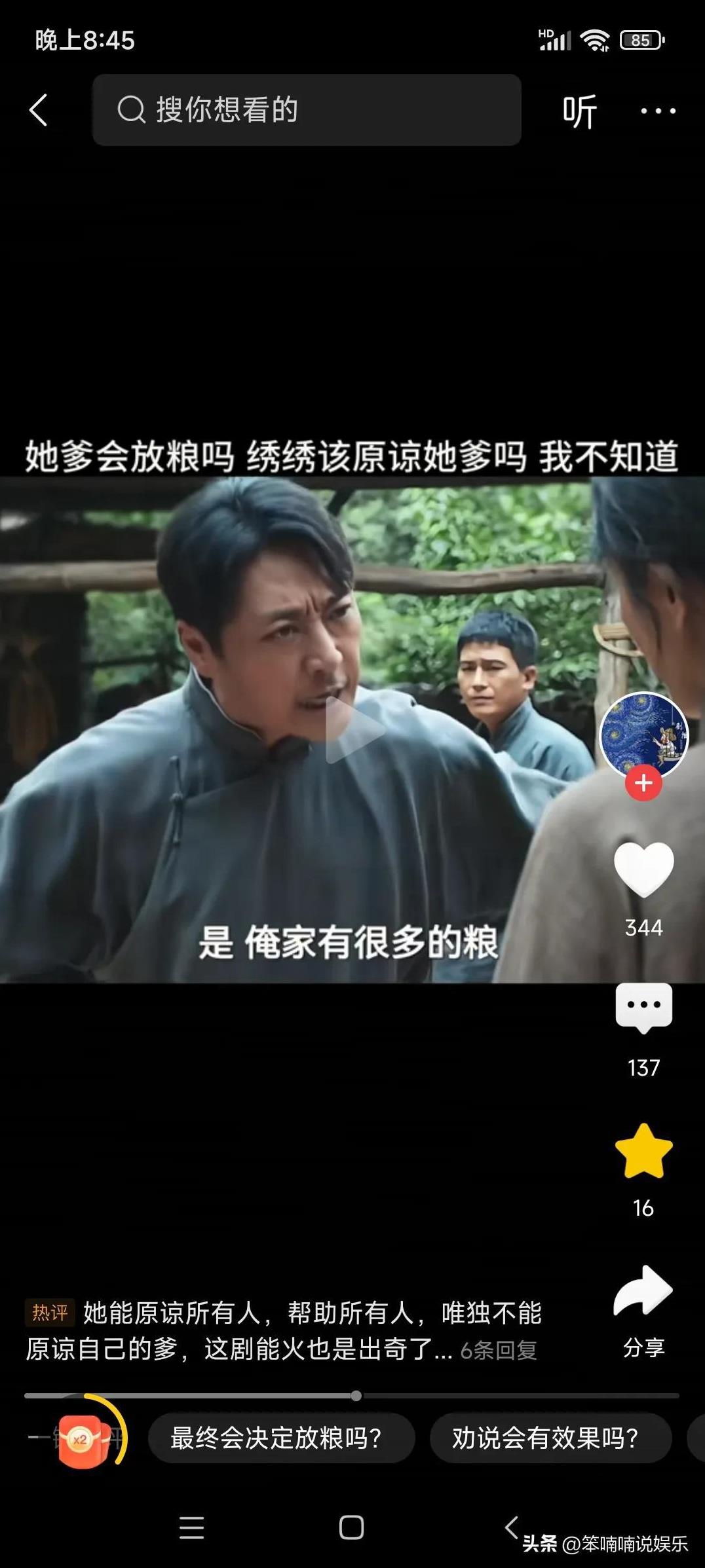 《生万物》宁绣自劝老爹放粮震灾这件事儿到底做的对不对呢? 在宁可金眼里宁绣绣就是为了报复老爹曾经没有赎自己才这样做的。宁可金给出的理由是灾民太多了,别到时候灾民就没救了反而反而把自己给饿死了。 其实在宁绣绣看来,开仓放粮其实是为了保护保护自己的爹。虽然粮食没了,可是宁学祥的好人名可留下了呀。不至于被游街示众。 只能说宁可金看的只是眼前的利益,而宁绣绣看的是长远。怎么说宁绣绣看的长远呢?因为后期经历过文化大革命的人应该都知道。懂的都懂对吧!你是赞同宁可金的看法呢还是宁绣绣的看法呢?