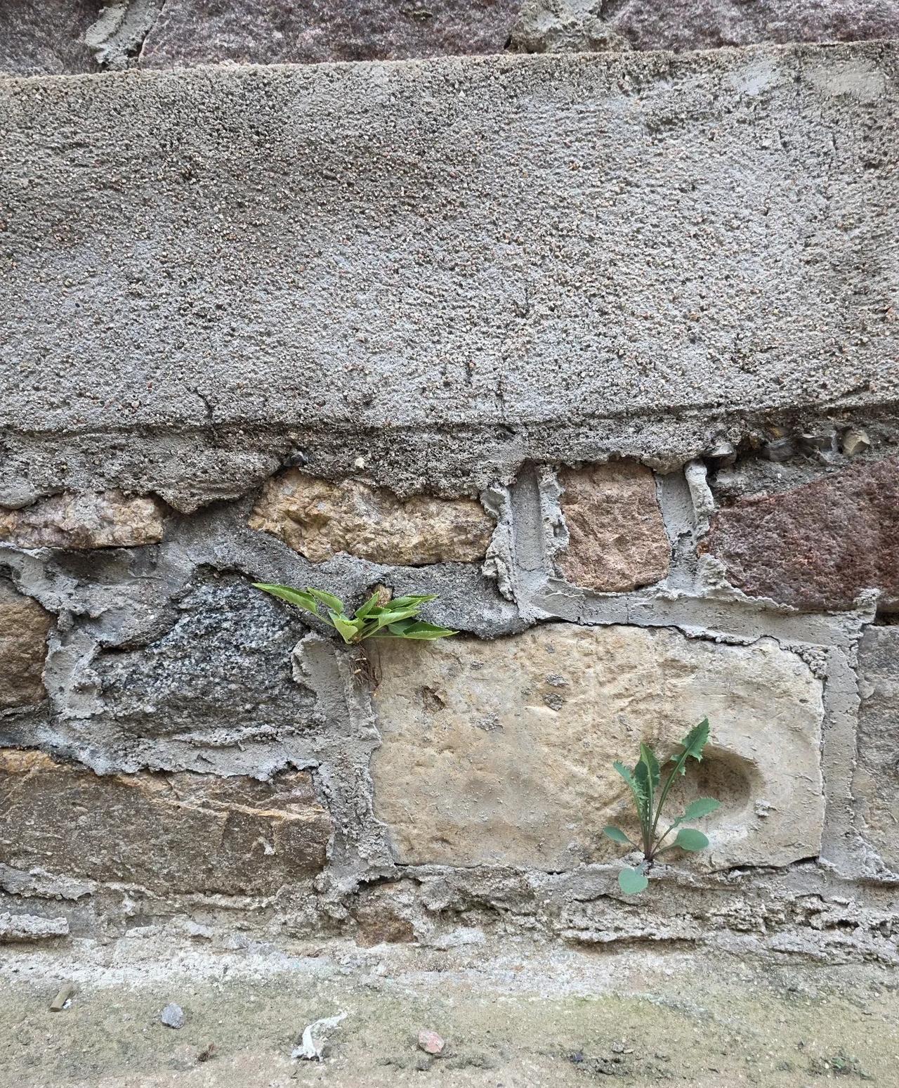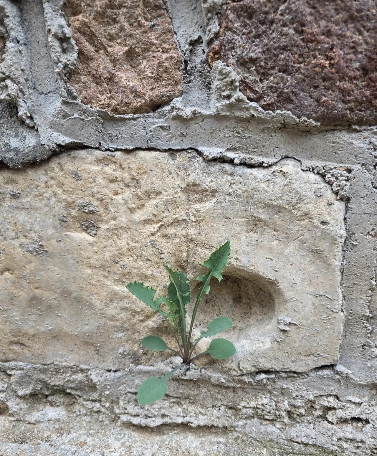 看到墙缝里生出的植物,我就想到我的父老乡亲…… 墙缝里哪怕有一点点土,即便没有一