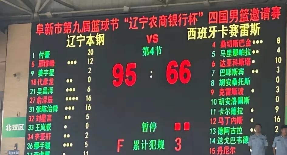 阜新四国男篮邀请赛,辽篮95--66大胜西班牙卡赛雷斯队。看看本场比赛谁是大腿,