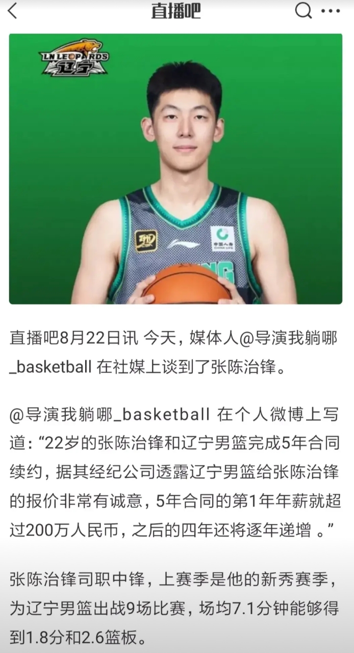 辽媒报道张陈治峰年薪高达200w! 说实话,不太相信张陈治峰值这个价位,如果辽宁