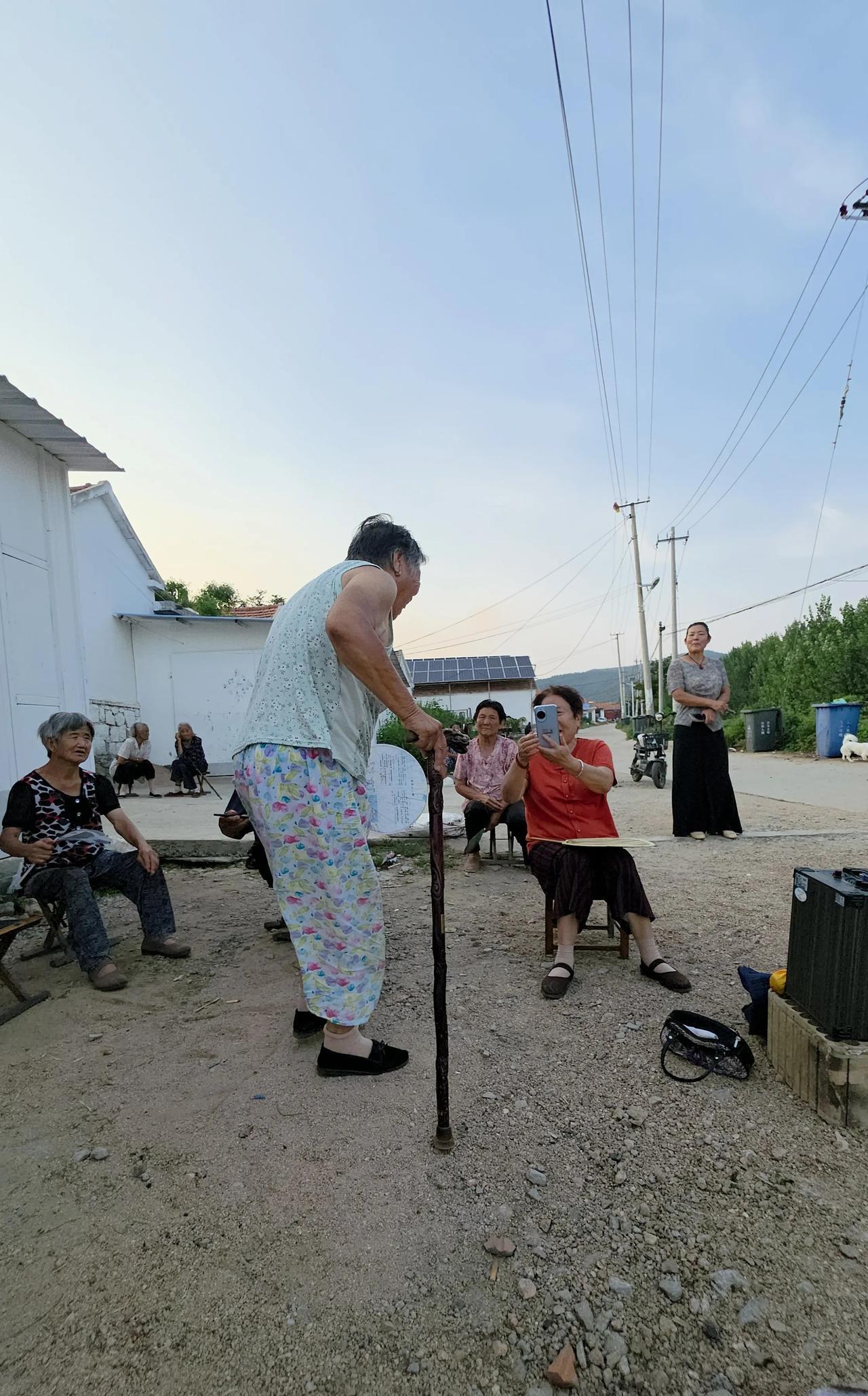 沂蒙山区的大姐们,农闲时节在街头娱乐…… 村里谈不上文化生活,更没有娱乐活动。但人总有一些精神层面的需要,也有交流和沟通的需要,因此农闲时节,村里的老人就聚在街头,男人们打牌下棋,女人们唱歌跳舞。 一切都是原生态。歌是自己跟着电视机、收音机、唱片机或者手机学的,都是上世纪五六十年代或者七八十年代的老歌、红歌,当代流行歌曲她们听不来也学不会,但这些老歌、红歌,通过她们没有经过任何修饰的嗓音诠释出来,没有伴奏的渲染,没有花腔的造作,更有韵味、更有力量。有个80岁的人高马大的婶子唱时那首《石油工人之歌》,总能听得我热血沸腾,而另一个婶子唱《大海航行靠舵手》时,我仿佛看到了那个火红的沸腾的年代。 《人人都说沂蒙山好》,这首沂蒙山小调大家都会哼几句,有几个嫂子和婶子唱得真好。前些年电视上出现的那些布帽姐、皮帽姐们唱得是不错,但我发现村里有几个嫂子和婶子,声音不在她们以下。 跳舞方面,除了上世纪五六十年代,村里上级派来的文艺工作队教会了大家扭秧歌外,现在跳的广场舞、健身舞,都是根据电视上学的,或者是在城里居住的人回村时教会大家的。 #晒图笔记大赛#