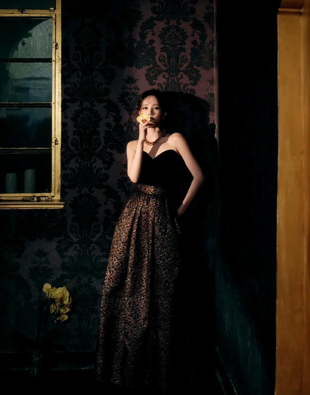 当李一桐身着那件诞生于1984年的古董抹胸刺绣礼服亮相活动现场时,仿佛时光的闸门被悄然推开。这件沉淀了四十年岁月的礼服,以细腻的金色丝线在丝绒之上勾勒出繁复花纹,灯光流转间,每一寸刺绣都泛着暗涌的贵气,像是将半个世纪的星光都织进了衣料里。 抹胸设计恰到好处地勾勒出她流畅的肩颈线条,东方骨相特有的温婉轮廓,与古董礼服自带的古典韵味碰撞出奇妙的火花。那不是简单的复古复刻,而是让四十年前的时尚灵魂在当代躯体上重新苏醒——礼服上的每一针刺绣都像是时光的密码,李一桐用她的气韵将其破译,既保留了1984年独有的端庄典雅,又注入了属于当下的诗意与灵动。 她站在那里,宛如从古堡壁画中走下来的公主,裙摆垂落间带着岁月的重量,却又因她的步履生出轻盈的韵律。这样的造型哪里是简单的穿搭,分明是一场跨越时空的对话,是用东方美学为古董礼服写下的全新注脚。正如网友所说,她是在认真"答题",用一身造型诠释了何为"经典永不过时",让我们看见:真正的优雅从不会被时光尘封,只会在懂得欣赏的人身上,绽放出更迷人的光彩。#李一桐礼服造型#