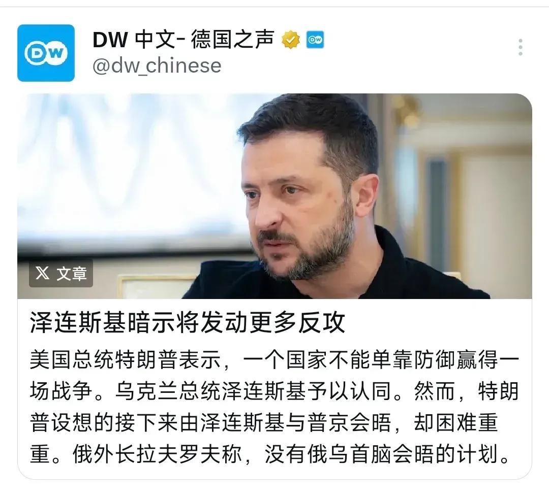 德国之声8月22日晚报道:“泽连斯基暗示将发动更多进攻。美国总统特朗普表示,一个