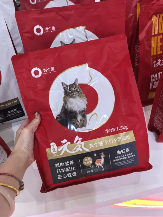 我发现了一个自有生产线的猫粮品牌——“有个圈”。这个品牌不仅技术上有中国农业大学的支持,而且在这次展会上,他们的猫粮,鱼肉,益生菌等等真是让人眼前一亮。🌟
