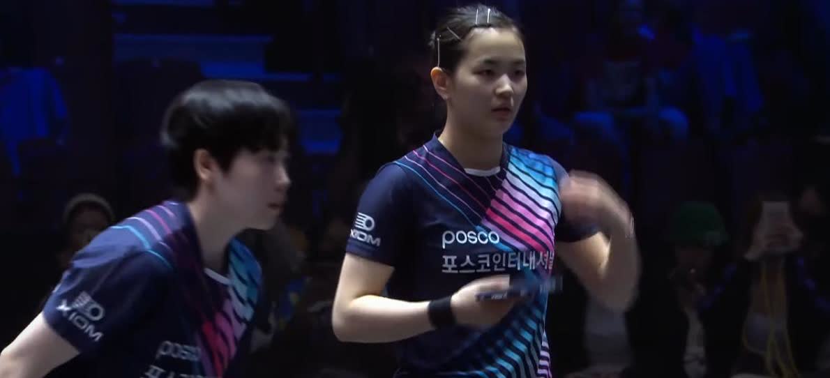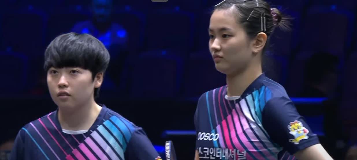 注意!海产姐妹比赛,两个日本教练偷看! 两人分别是中泽锐和张本宇。 其中中泽锐原来叫王锐, 还是孙颖莎师哥。 张本宇就不用说了吧。 今天又没有日本队比赛, 他们来看, 肯定是研究国乒吧。 第一局 一不小心 海产姐妹11:3拿下, 哈哈 第二局 两队比分咬的紧, 但关键时刻, 海产姐妹两颗大心脏, 连赢四分 11:7拿下 第三局 11:8拿下 海产姐妹零封韩国组合。
