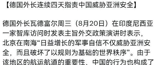 太尴尬了!就没有见过这种没有眼力见的政客!外媒刚传出,印尼总统普拉博沃将亲自出席9月3日的中国抗战胜利80周年阅兵式,并进一步与中国加深合作。但是没想到不识趣的德国外长瓦德富尔当着印尼的面,对我们大放厥词。瓦德富尔声称,北京在南海“日益增长的军事自信不仅“威胁”亚洲安全,而且破坏了“以规则为基础的世界秩序”。 他这话可真是无稽之谈。咱中国在南海的活动,那都是合法合理的,一直都是在维护自己的主权和领土完整,怎么就成了他口中的“威胁”了呢? 其实啊,这瓦德富尔可不是第一次说这种话了。他这次来亚洲访问,从启程阶段就开始对华无端指责。他在赴日前对媒体宣称,中国在台海、东海和南海的所谓“侵略性行为”已波及欧洲,还指责中国“以不公平贸易方式挑战欧洲经济”。你听听,这不是睁着眼睛说瞎话吗? 到了日本之后,他更是变本加厉。8月18日,他和日本外相岩屋毅举行首次“日德外长战略对话”,之后就进一步升级对华指责,称中国大陆在台海、东海和南海“屡次试图单方面改变现状”,还把中方举动与“全球安全与经济”挂钩。在与日方共同发表的联合声明中,他还无端批评中国在俄乌冲突中“支持俄罗斯”,这完全就是无中生有嘛。 没想到,他到了印尼还是不收手。他抓住南海航运航道的重要性大做文章,把中国的正常活动说成是“经济威胁”,还警告说南海和台湾海峡的局势有升级的风险,一旦出事,会对“全球安全和世界繁荣”造成重大影响,连德国和欧洲的利益也会被直接波及。 他这是想干啥呀?不就是想借着“地区安全”“全球秩序”的由头,在亚太事务里刷“存在感”,给中国添堵吗? 咱中国外交部发言人毛宁早就说了,相关方应尊重地区国家为通过对话协商解决问题、维护和平稳定所做的共同努力,而非去挑起矛盾、渲染紧张氛围。可这瓦德富尔呢,把中方的警告当成耳旁风,继续大放厥词。 实际上,真正破坏地区秩序的是谁呀?是美国等个别域外国家。他们常常以“航行自由”为借口,频繁派遣军舰、军机在南海进行挑衅和滋扰,扰乱地区的和平稳定。而德国外长对此却置若罔闻,反而对中国横加指责,这不是荒谬至极吗? 德国这是咋了呢?为啥要跟着美国瞎起哄呀?其一呢,美国近年来大力推行“印太战略”,企图拉拢盟友共同遏制中国发展,德国可能想借此机会向美国靠拢,在跨大西洋联盟中谋取更多政治利益。其二呢,德国国内经济也面临着困境,能源压力也不小,他们可能想通过对外示强,转移国内民众对这些问题的关注。 但不管怎么说,瓦德富尔的这些言论都是站不住脚的。咱中国在南海的立场是坚定的,维护自身主权和领土完整的决心也是不可动摇的。 我们一直主张通过对话协商解决南海问题,也一直在为地区的和平稳定做出贡献。德国外长应该尊重事实,摒弃偏见,不要再发表这种不当言论了。否则啊,他只会让自己越来越尴尬,也会让中德关系受到影响。咱中国可不是好欺负的,要是德国继续这样跟着美国瞎折腾,咱们也必将奉陪到底,坚定回击。