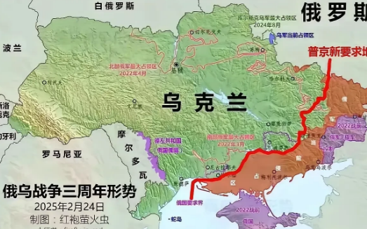 在华盛顿访问期间,泽连斯基用白宫的一幅地图成功的否决了特朗普的提议。 该地图显示