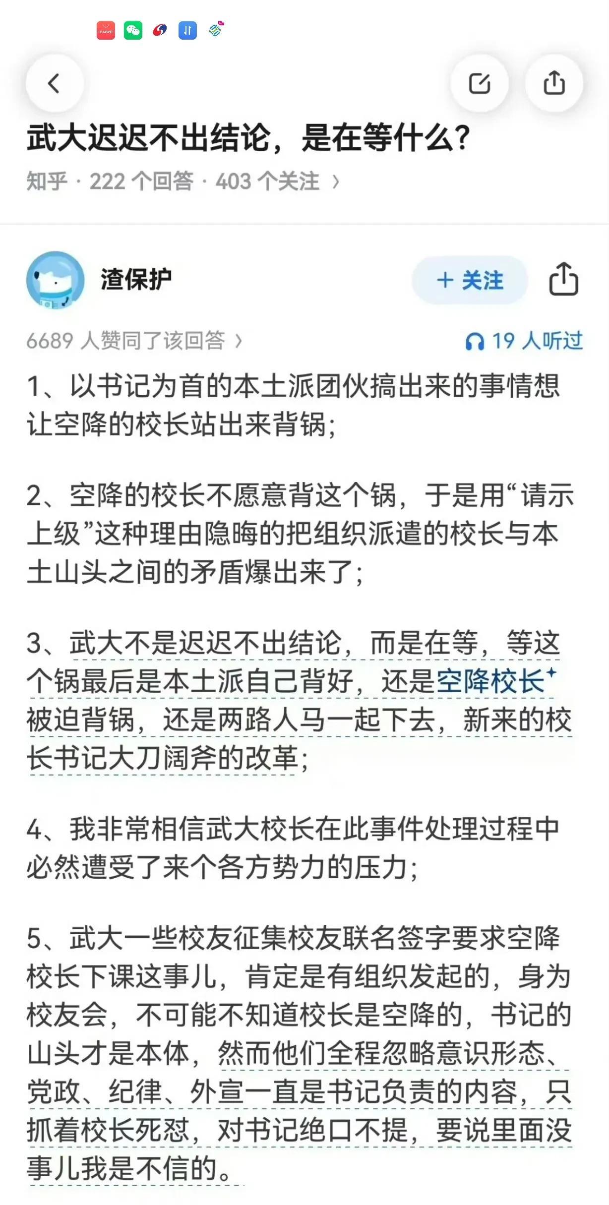 现代版的掩耳盗铃。武大在汹汹舆情之下,反应一直如同蜗牛爬树般迟缓。最新的进展是,