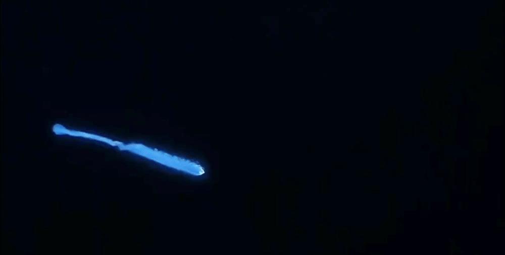 小说中的“剑气开天门”、“一剑光寒十九洲”,也不过如此了! 看起来是真的壮观啊,这古人要是能看到这种场面,怕不是又得多几个仙人传说。 其实图中的场景是一种大气物理现象,叫做“暮光效应”,一般出现在傍晚或者晚上,成因是火箭在高空飞行时,尾迹中的微粒对阳光产生了散射,就会出现这种彩色(蓝色、橙色等)的“火箭云”。