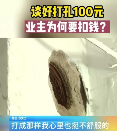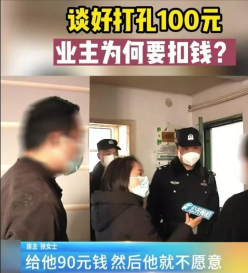 “100元打一个孔,最后还要再扣5元,必须报警!”河南郑州,李师傅给业主卫生间打排气孔,约好的价格100元,但是打孔结束后,业主要扣10元,原因是业主认为李师傅操作不当,把外墙白灰蹭掉了一圈,李师傅并不认可,这是老房子,掉白灰太正常了,自己没有过错,即便业主做出让步,只扣5元钱李师傅也不认可,必须支付100元,少一分都不行,业主也火了,双方僵持不下,李师傅报警求助。