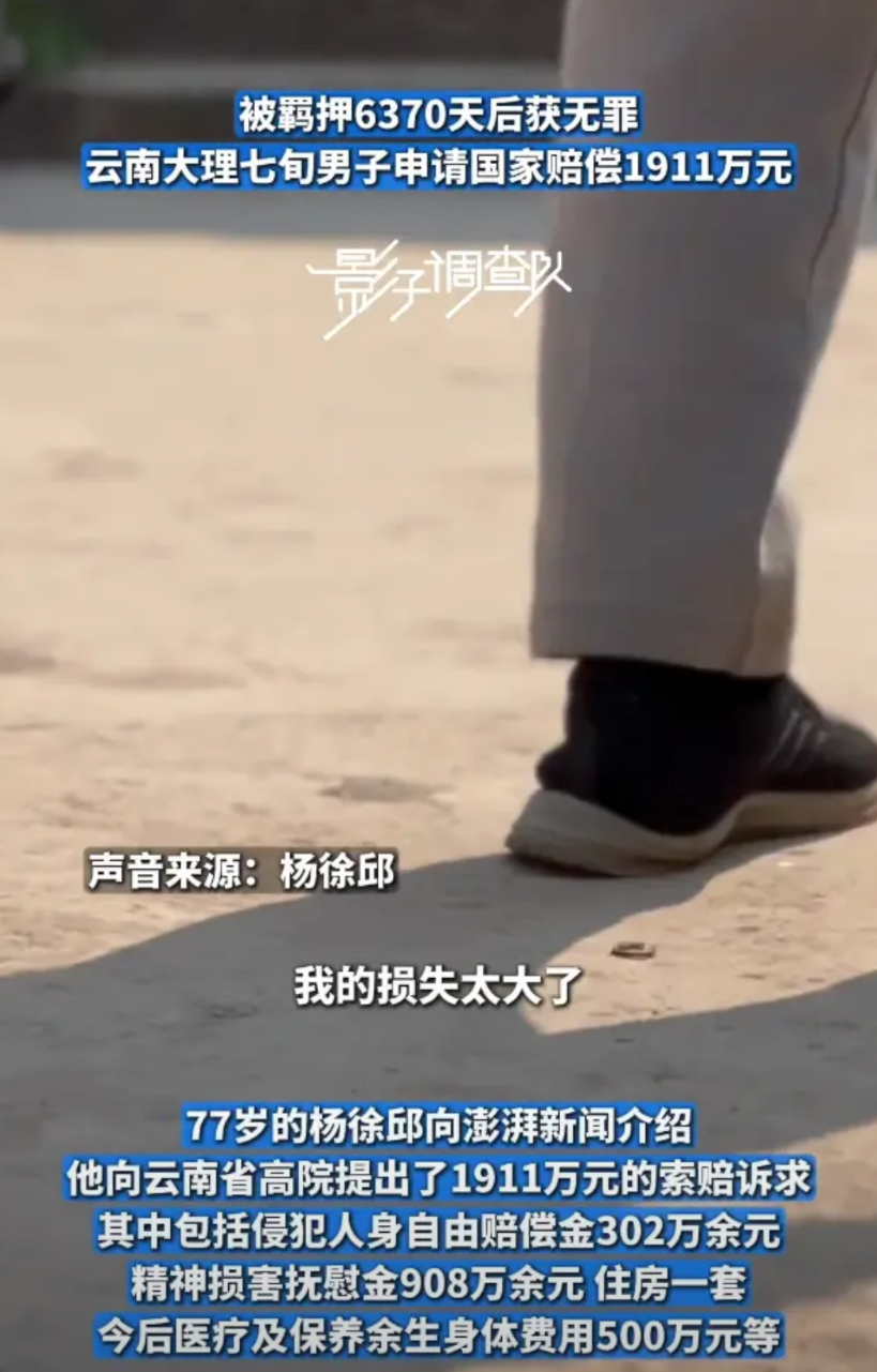 云南大理白族自治州,一老人在30多年前被卷入一起强 奸、故意杀人案,一审都判处其死刑了,但二审改判了死缓,这让老人有了希望,他不断申诉,直至2025年才洗脱故意杀人罪的罪名。如今老人提出了1191万元的高额赔偿,其中包含侵犯人身自由赔偿金、精神损害抚慰金等,甚至还要求一套住房以保证晚年能有个地方住,但因为案情复杂,所以赔偿决定被延期了。