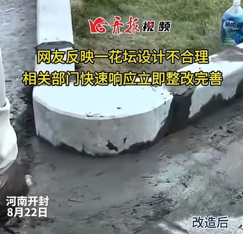 开封的办事效率真高,这个花坛的尖角这么快就改造完成了,圆形的安全多了,而且也很好