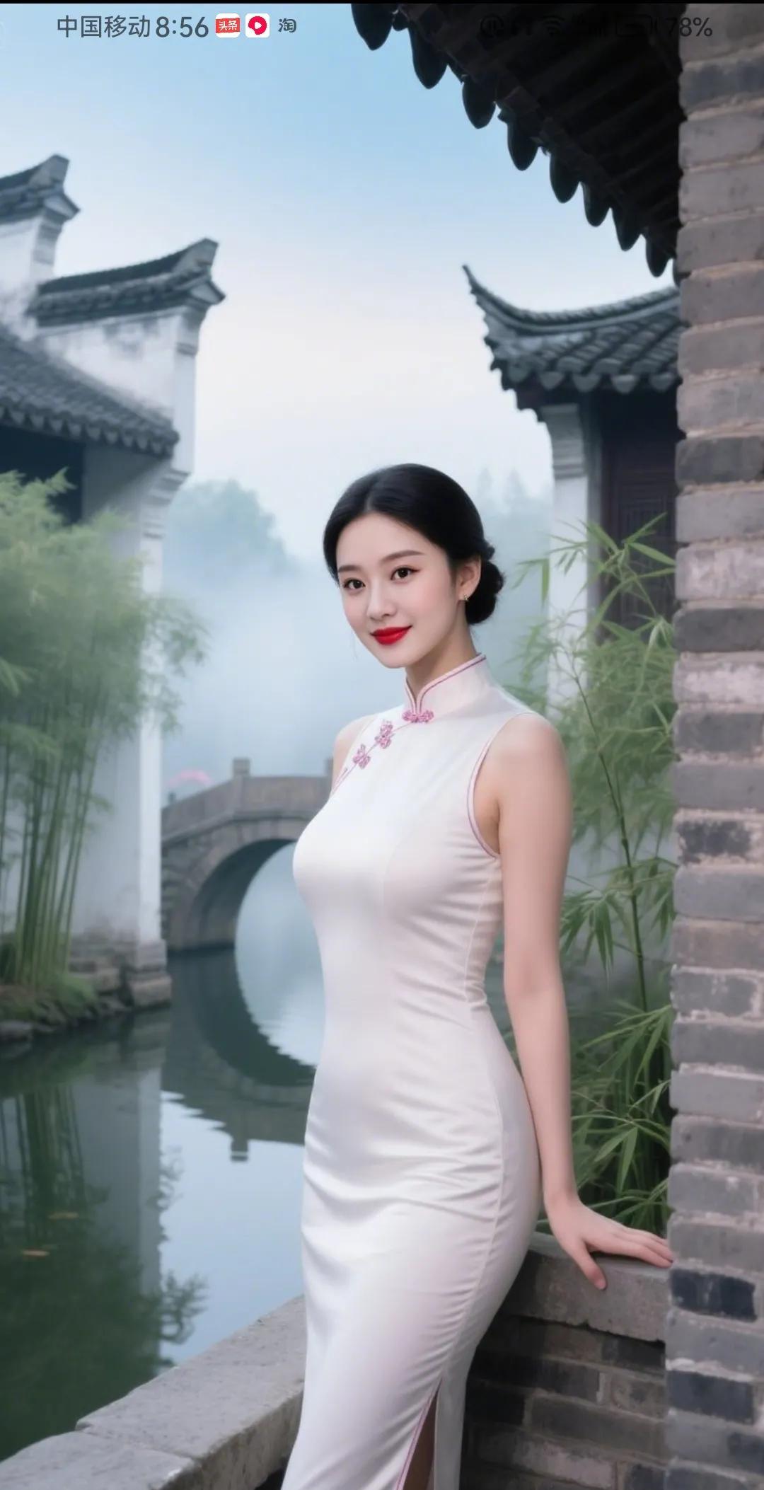 #韵美诗词分享##头号创作者激励计划# 《清平乐·旗袍雅韵》/马进鹏 烟轻雾绕,桥卧清波渺。竹影摇窗添静悄,一袭素衣娇俏。 青丝绾就云鬟,红唇点破幽欢。 且共水光同醉,任凭思绪悠然。