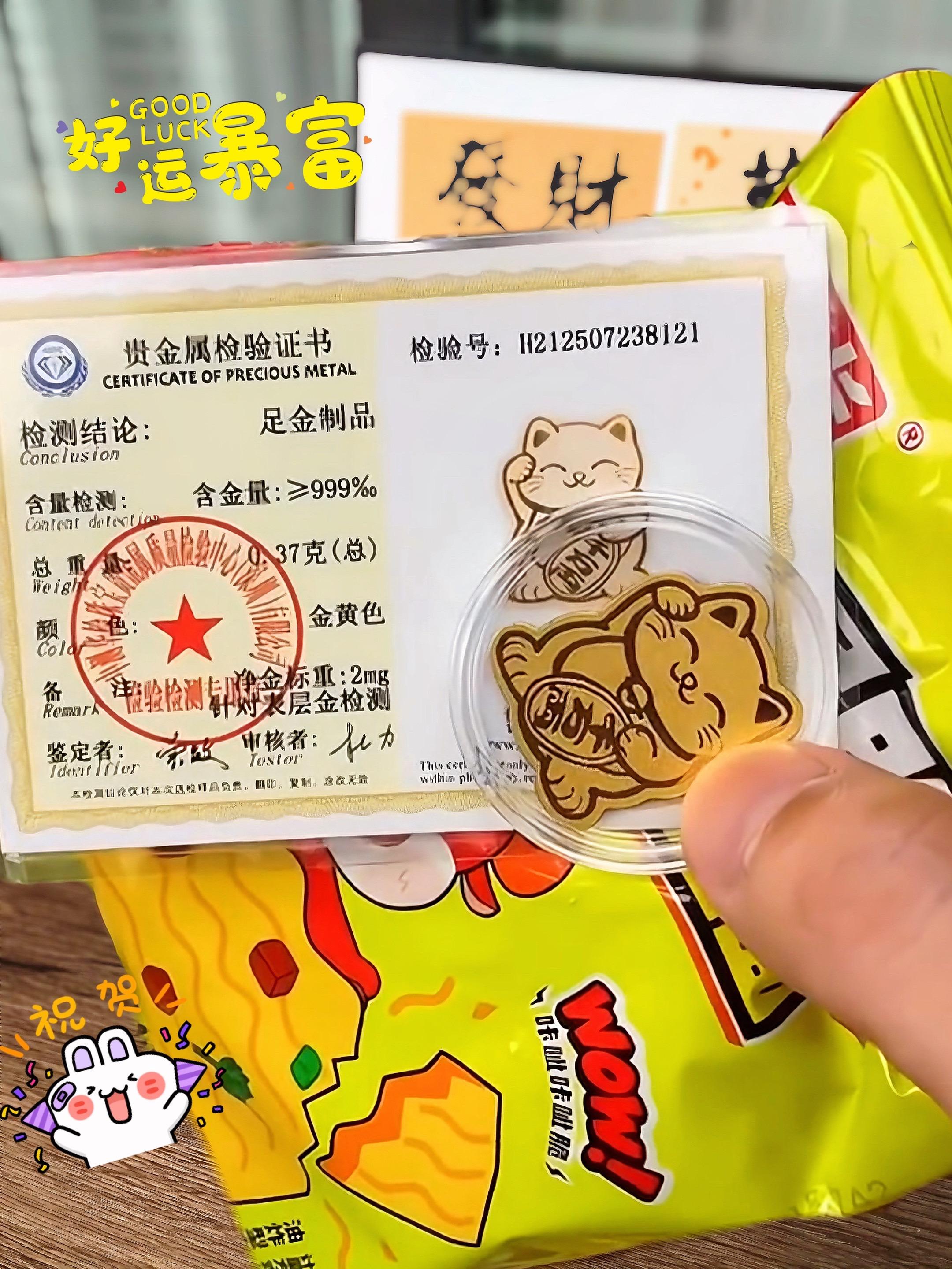啊啊啊啊!余校长你真的配享太庙啊!!有消费者吃干脆面居然硌掉了牙齿!老板快急疯了!决定拿出1000万换成同等价值的黄金回馈所有消费者!现在买干脆面的箱箱都有黄金!冲冲冲!