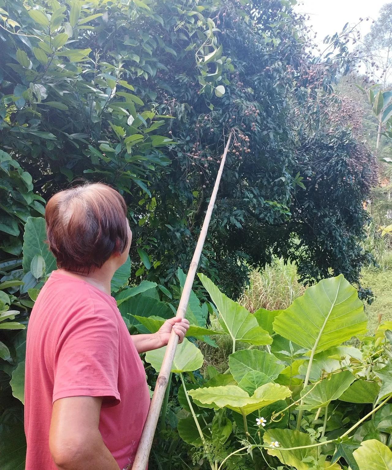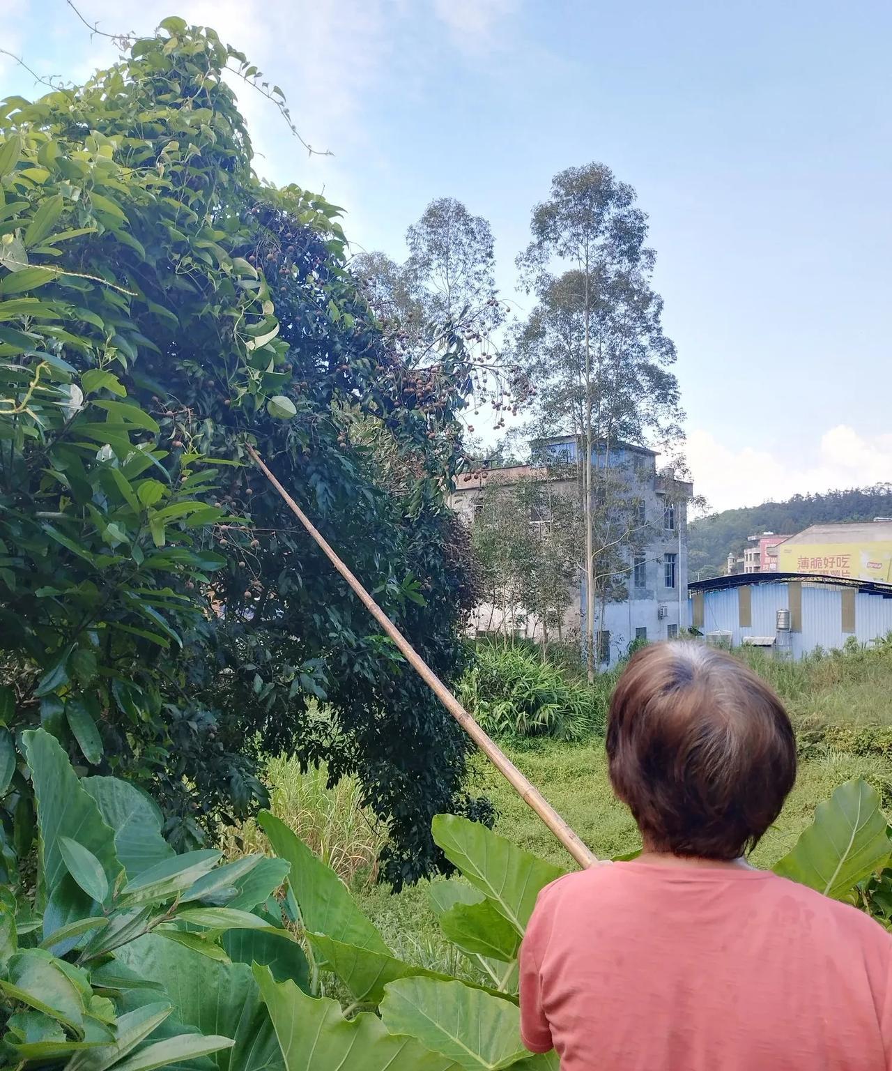 感谢各位网友,我才吃上了自己家的龙眼。 前两天我说家里有龙眼都摘不到吃,还要去镇上买,只能望树兴叹了! 然后网友们都给我出了主意,有人叫我去网上买一把长剪刀,我看了一下,差不多要100块,不划算。 还有网友说拿一条长竹竿,在一头绑一把弯弯的镰刀,就可以把龙眼割下来了。 更多网友的建议是,直接拿一条长竹竿,在小头打开一点点,卡上一条短棍子,就可以把龙眼夹下来了,我妈妈一试,果然有效,夹下来了一大堆龙眼,又省钱又简单! 图片就是我妈妈夹到龙眼了,好开心!