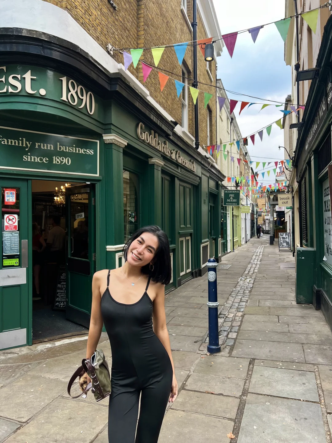 上身pdd的黑色连体吊带…