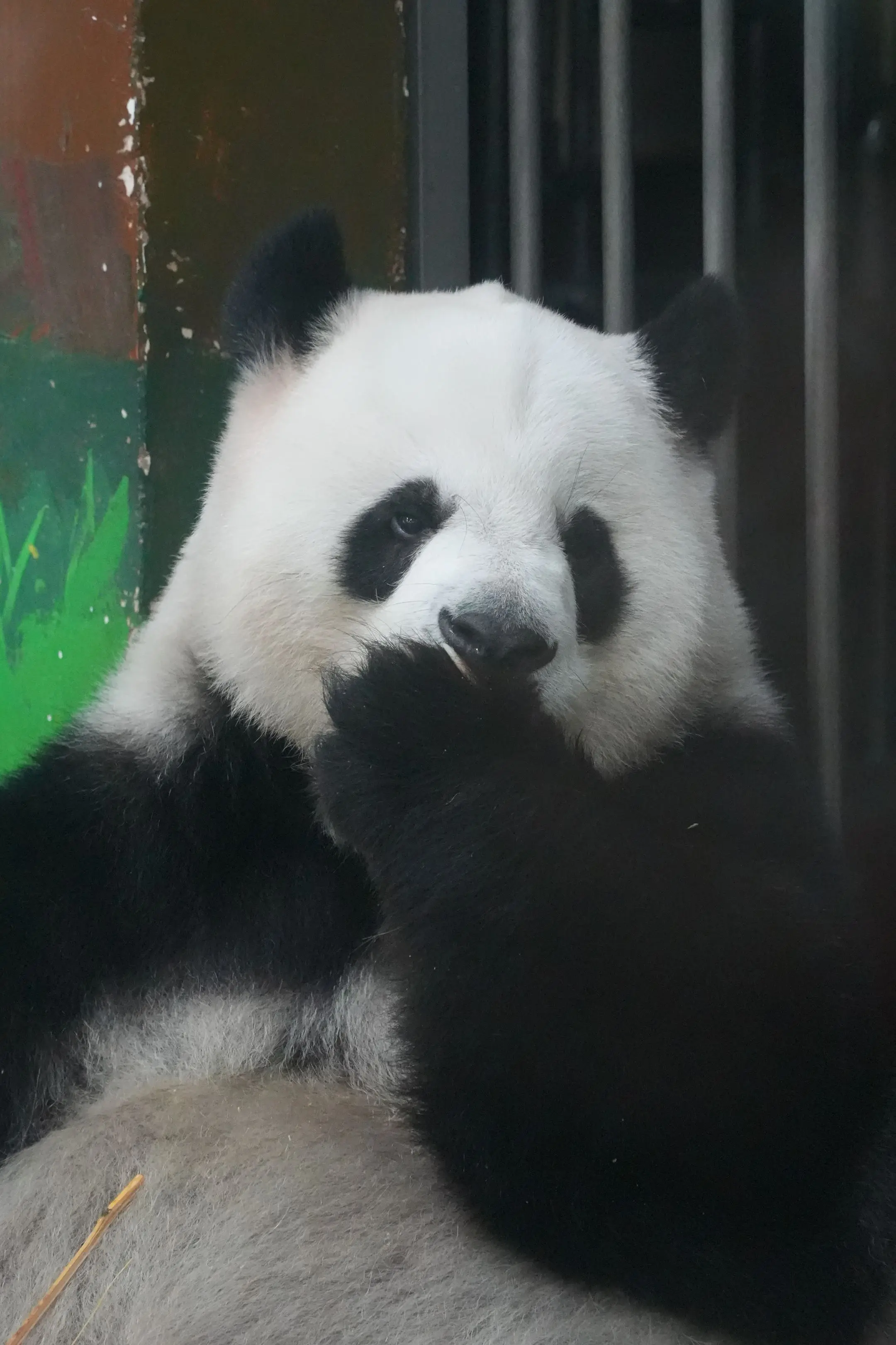 国庆大熊猫。(原来我拍了那么多国庆和镜子的照片,太可爱了。)