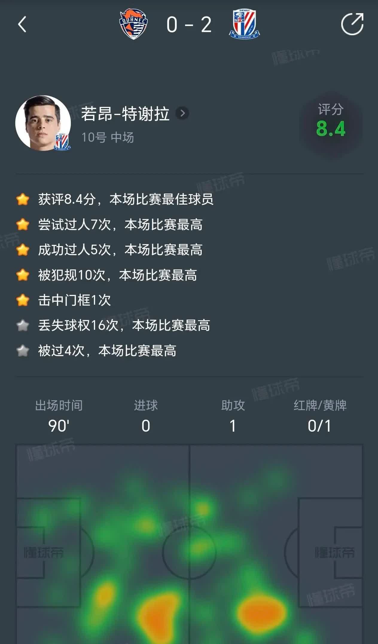 申花2:0青岛必须承认特谢拉就是申花最关键的一环,致命一传必须还是他。看看今天青岛海牛是怎么防特10的,不让他转身,死命缠绕着但就是这样他还是能把球带出来,这就是能力。 虽然脾气暴躁,今天又吃了黄牌。但拼也是真得拼,就是话多了点,只要控制好自己的情绪他一定能带领申花拿到冠军。