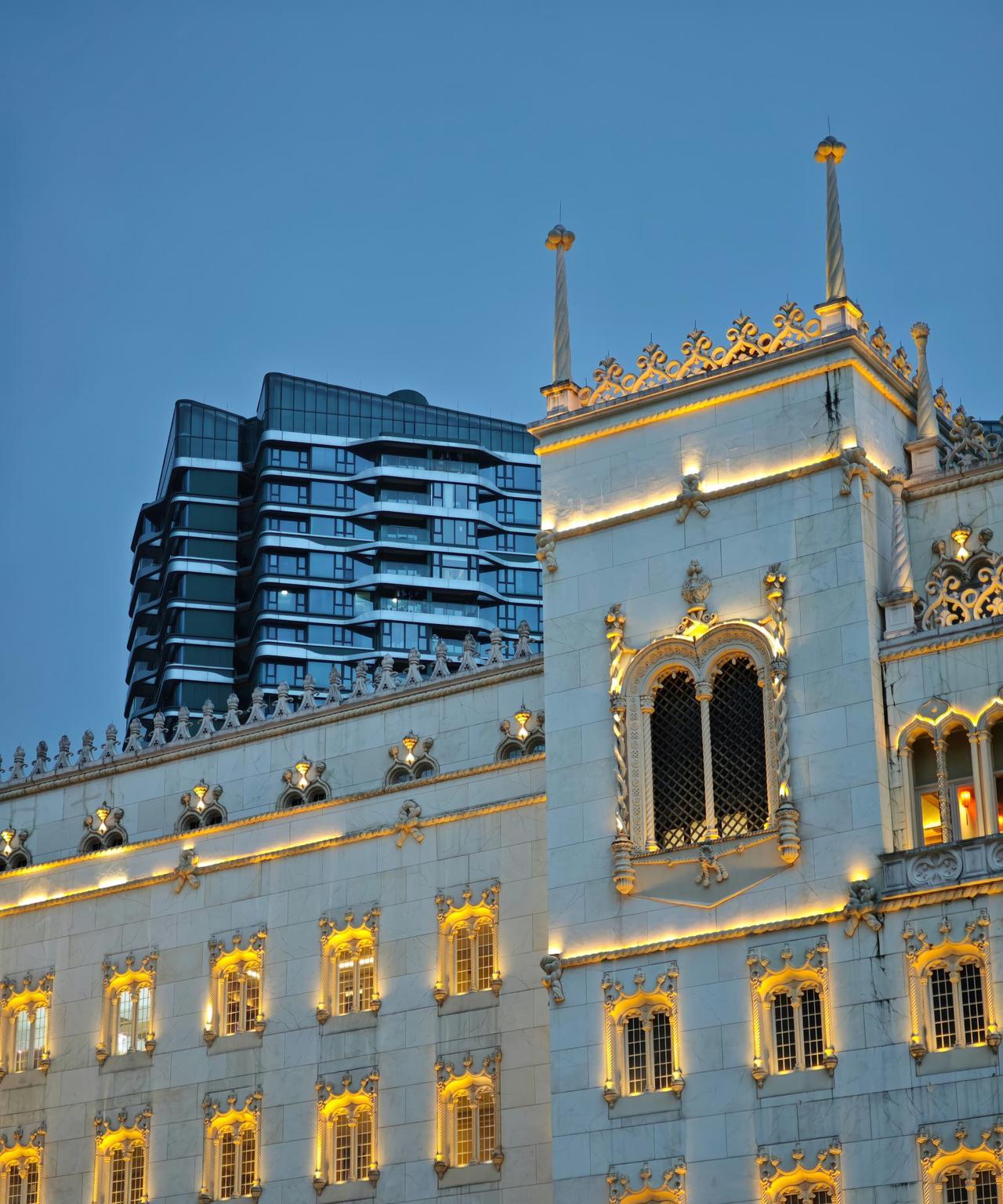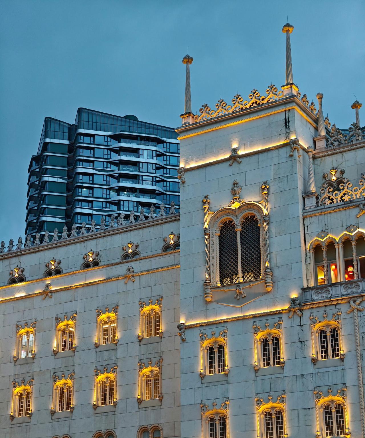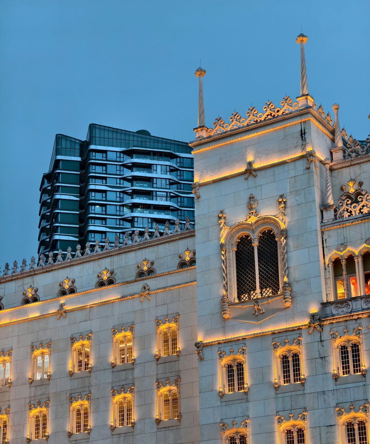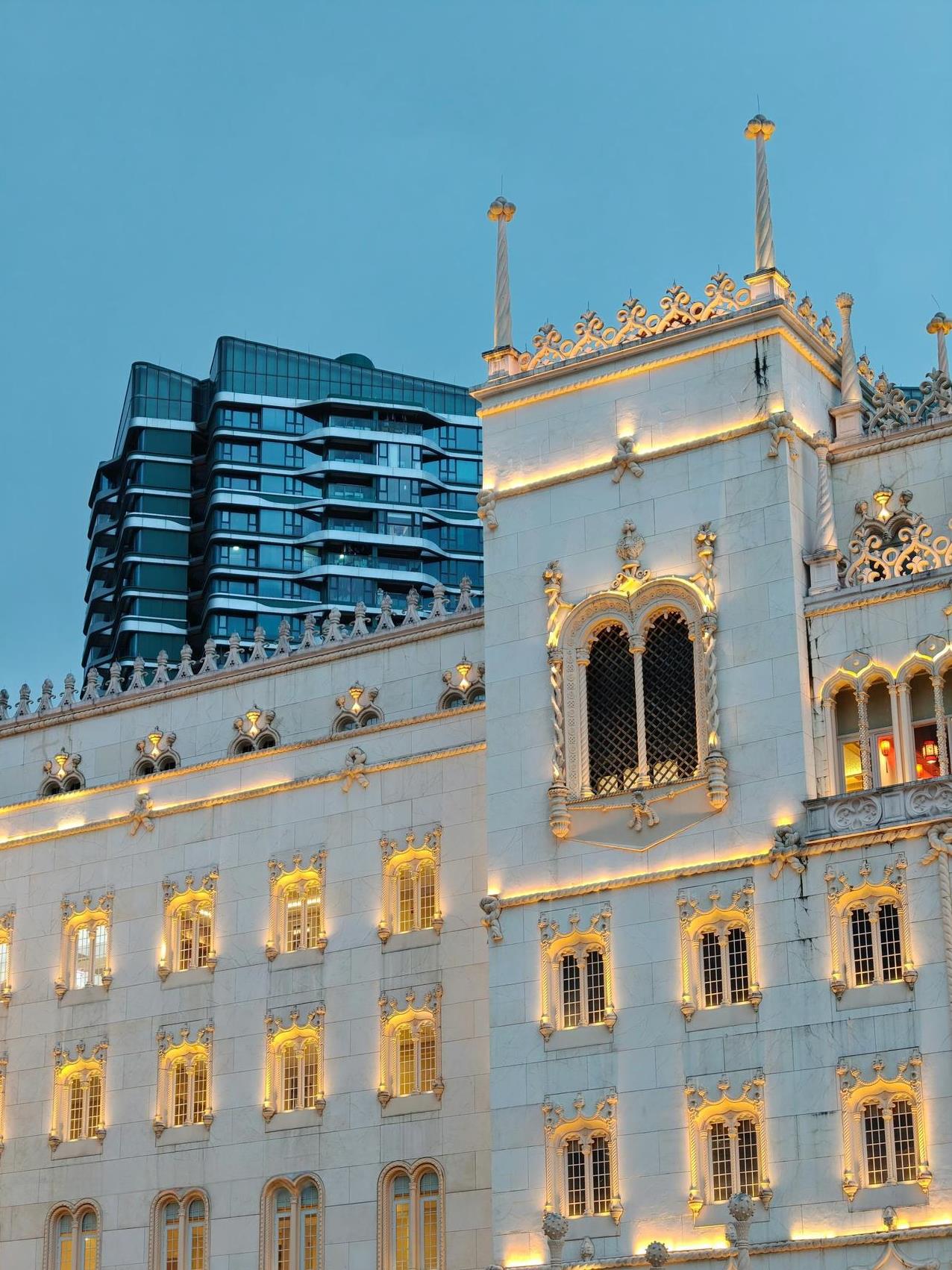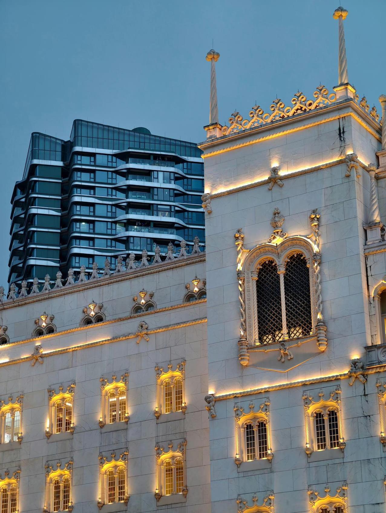 在暗光环境下同时拍摄两种风格的建筑物,看看魅族22的「建筑长焦暗光」表现。各