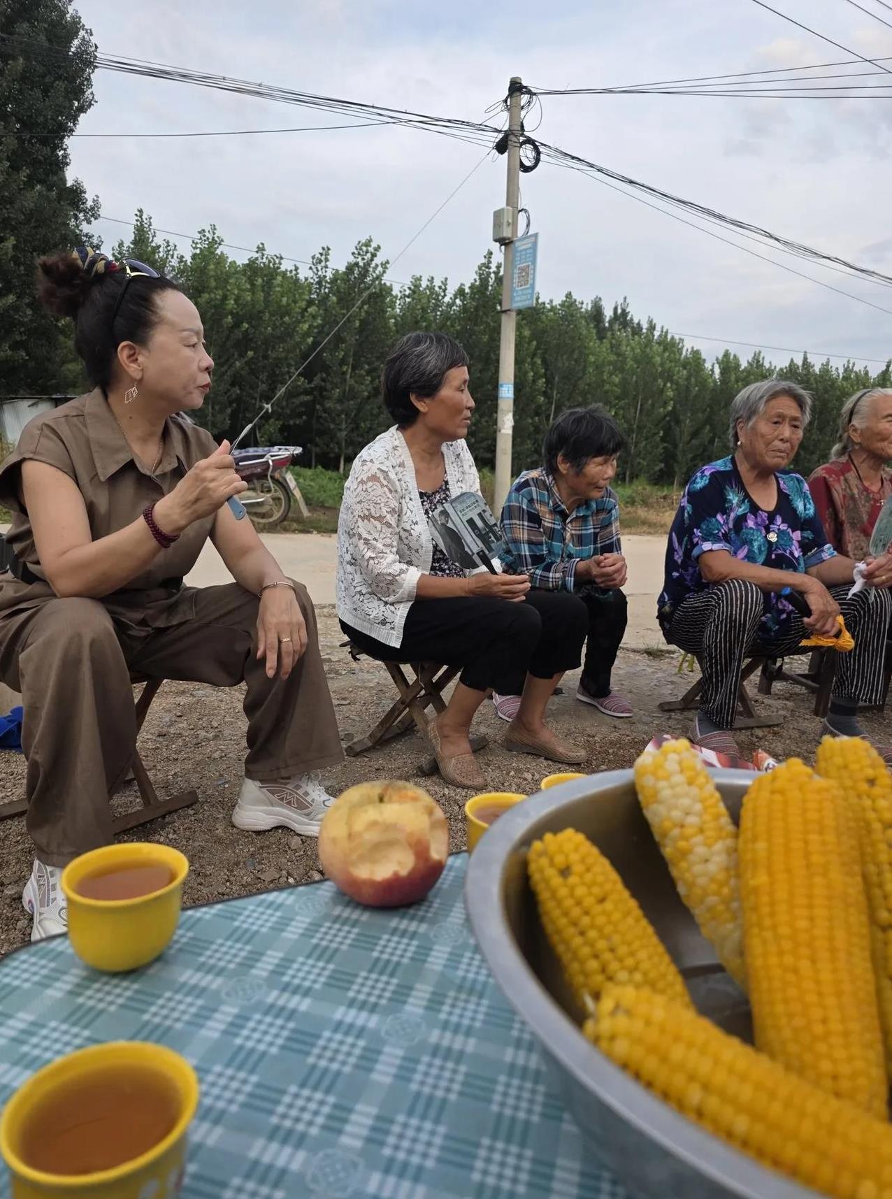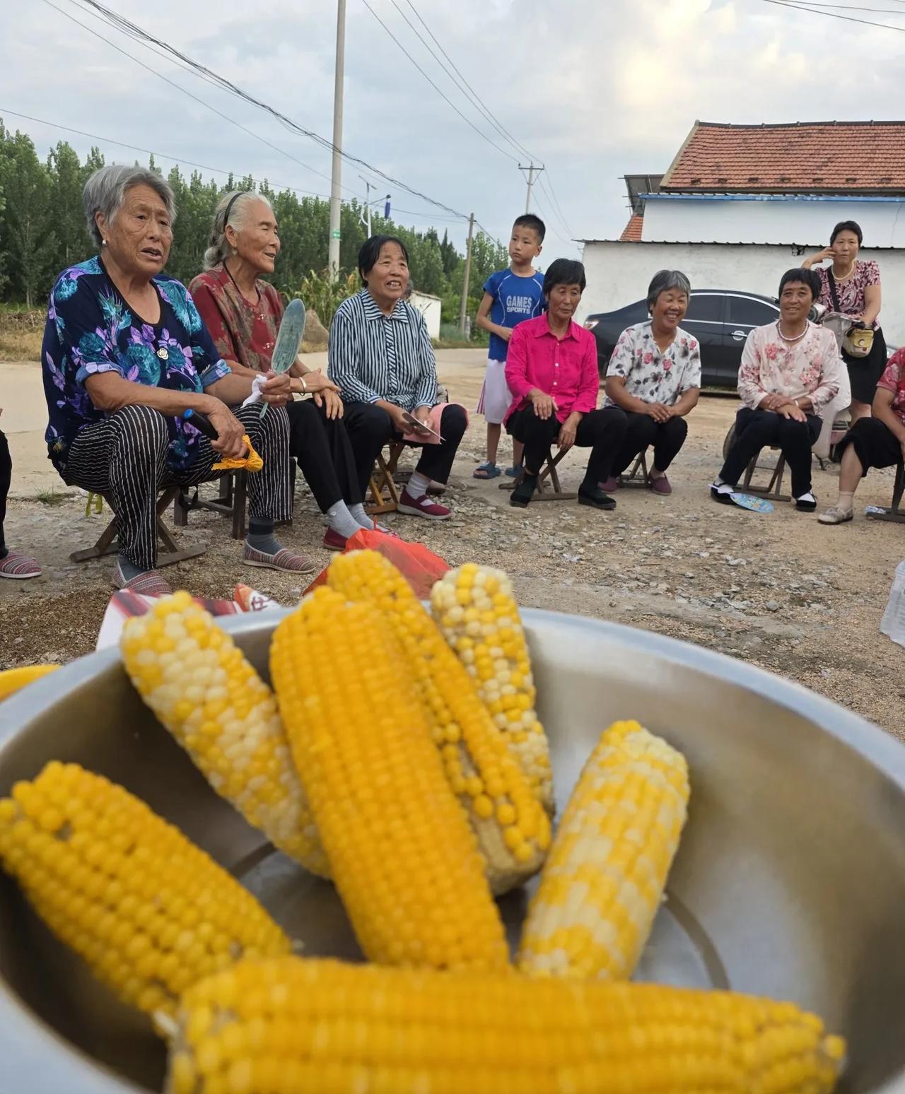乡村街头,一群人啃一盆玉米…… 今天下午三点,镇文化站的工作人员又来到村里,嫂子