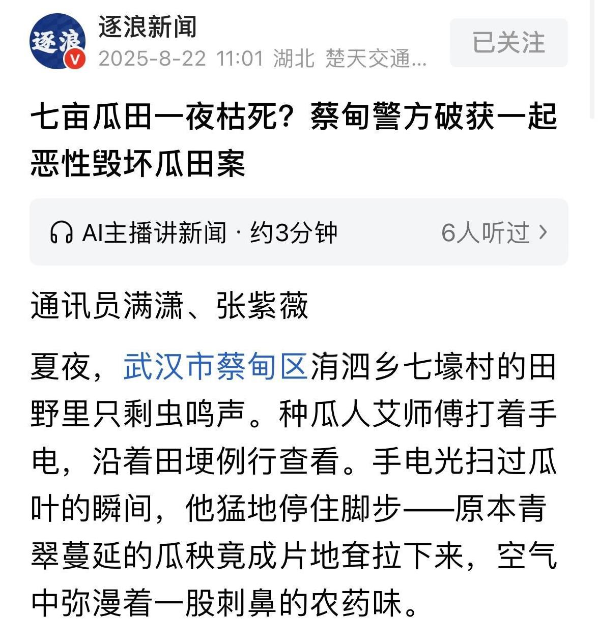 湖北武汉,男子2人没经主人同意,就私自进瓜田里抓野兔,结果被田主撞了个正着,直接把他们轰了出去,男子2人因此心生怨气,决定报复田主,他们叫上另一个朋友,买了几瓶除草剂后,偷偷把7.5亩的瓜田喷了个遍,导致整个瓜田枯黄一片,损失起码2万,田主心血全白费了。结局解气! 8月22号,据逐浪新闻报道,某天夜里,种瓜的老艾举着手电筒,沿着田埂慢慢走,心里盘算着再过几天就能收瓜卖钱了。 可手电光刚扫过一片瓜秧时,他突然愣住了。 只见原本绿油油、爬满架子的瓜藤,这会儿全耷拉着脑袋,叶子枯黄卷曲,凑近一闻,刺鼻的农药味直冲鼻子。 糟了!老艾腿一软,差点摔在田里。他蹲下身,手指搓了搓发黄的叶子,又放到鼻子底下闻了闻,脸瞬间白了。 这味道他太熟悉了,是有人故意喷了除草剂! 足足7.5亩地啊,他大半年起早贪黑,浇水、施肥、打顶,就指着这茬瓜卖钱呢,现在全完了… 第二天一早,老艾就跑到派出所报了警。 民警赶到瓜田时,眼前的场面让人心疼:原本绿油油的瓜田,如今瓜秧却全蔫了,地上还散落着几个空农药瓶。 技术民警蹲在地上,用镊子夹起枯叶放进证物袋,又拍了照片,初步估算损失得有2万块。 另外民警判断,这八成是有人故意这么干的,为了把人揪出来,他们连夜调取了周边十几个路口的监控。 监控里,一辆白色轿车引起了注意。 这车大半夜在乡间小道上转悠,车牌还被布遮得严严实实。民警顺着车的轨迹一路追,发现它从洪湖方向过来,案发当晚在瓜田附近绕了好几圈。 通过比对车型和行车路线,民警很快锁定了车主侯某某和同车的杨某某。 8月19号上午,派出所联合另一个派出所的民警,直奔洪湖市的一个农场。 推开某处仓库门的那一刻,侯某某和杨某某正蹲在地上修农具,看到民警的瞬间,2人脸色相当精彩。 审讯室里,侯某某低着头交代了作案经过。 原来,8月上旬的一天晚上,他和杨某某去老艾的瓜田捉野兔,刚下网就被老艾发现了,拿着手电筒追着他们骂。 2人心里窝着火,越想越气,就找来王某,3人买了几瓶除草剂和喷药桶。 侯某某说,我们就是气不过,想给他点颜色看看。案发那晚,他们用布把车牌遮得严严实实,开着车从洪湖摸黑到了瓜田。 3人分工明确:侯某某负责喷药,杨某某和王某在田边望风。半小时不到,7.5亩瓜田就被喷了个遍。 主板民警一听,气得不行,说你们就为捉只野兔被赶,就要毁人家半年的收成?已经犯罪了知不知道? 到了8月18号下午,王某顶不住压力,主动到派出所投了案。 当晚,3人就被依法刑事拘留。 那么,从法律角度来看,3人将面临怎样的惩罚? 《刑法》第276条规定:由于泄愤报复或者其他个人目的,毁坏机器设备、残害耕畜或者以其他方法破坏生产经营的,处三年以下有期徒刑、拘役或者管制;情节严重的,处三年以上七年以下有期徒刑。 侯某某、杨某某、王某三人因捕捉野兔被驱赶后心生怨恨,为报复泄愤,事先准备农药并喷洒至瓜田,导致7.5亩瓜秧枯萎死亡,直接破坏了艾师傅的农业生产活动。 他们的行为符合“泄愤报复或其他个人目的”的主观要件,以及“破坏生产经营”的客观要件。 法条中的“其他方法”包括但不限于毁坏生产工具、投毒、破坏作物等。 本案中,嫌疑人通过喷洒农药导致瓜秧死亡,属于以“投毒方式”破坏农作物生产,与毁坏机器设备、残害耕畜具有同等危害性,应认定为破坏生产经营的行为。 根据约2万的损失金额及作案手段进行本案尚未达到“情节严重”这如造成重大经济损失、多人受害或引发群体性事件的标准,因此可能适用“三年以下有期徒刑、拘役或者管制”的刑罚。 但如果后续侦查发现其他恶劣情节,比如多次作案、组织团伙,量刑可能升级。 《刑法》第275条规定:故意毁坏公私财物,数额较大或者有其他严重情节的,处三年以下有期徒刑、拘役或者罚金;数额巨大或者有其他特别严重情节的,处三年以上七年以下有期徒刑。 嫌疑人明知喷洒农药会导致瓜秧死亡,仍积极实施该行为,主观上具有毁坏财物的故意,客观上造成艾师傅经济损失约2万元,符合故意毁坏财物罪的构成要件。 故意毁坏财物罪的立案标准为“造成公私财物损失五千元以上”。本案中损失达2万元,远超“数额较大”的起点,依法应追究刑事责任。 而嫌疑人的行为同时触犯破坏生产经营罪与故意毁坏财物罪,属于想象竞合犯。根据刑法理论,应择一重罪处罚。 最后在民警的劝说下,他们凑了2万块钱赔给老艾。 嫌疑人主动退赔2万元,可视为认罪悔罪表现,依据《刑法》第67条从轻处罚,但不影响罪名认定。 现在,案件还在进一步查,但老艾的瓜田已经重新翻耕,准备种下一茬作物。 他也明白了,种地靠天也靠人,但最要紧的是别跟人结仇,否则这后果他真是担不起。 对此,你怎么看? 关注@运良说法 学法律知识不迷路 #头号创作者激励计划#