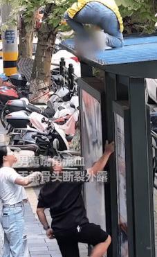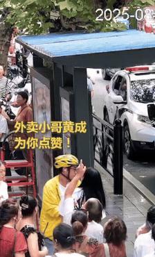 “没想到上人民日报了!”一个外卖小哥送餐途中突然爬上公交站棚顶,附近的人以为他帮