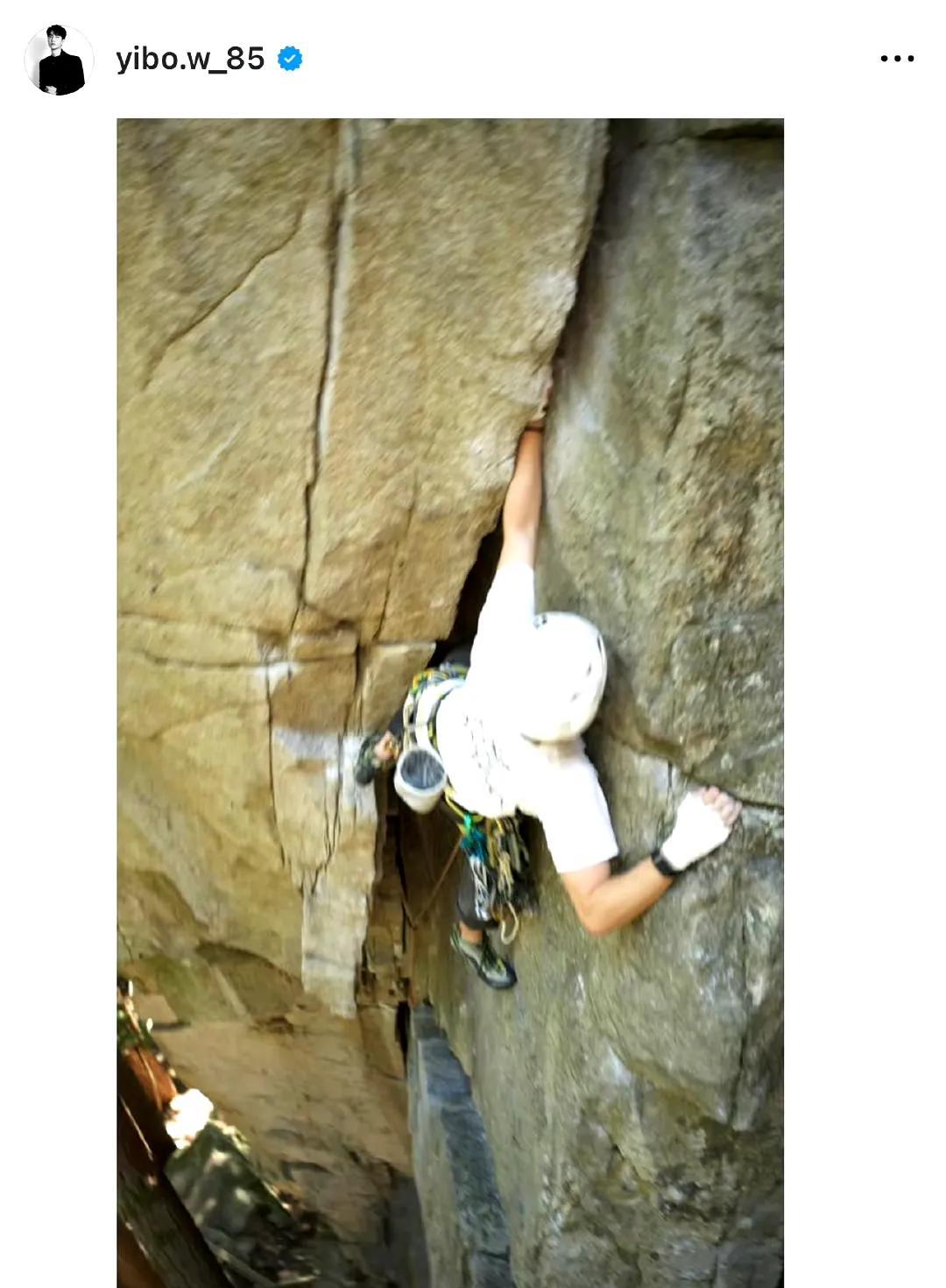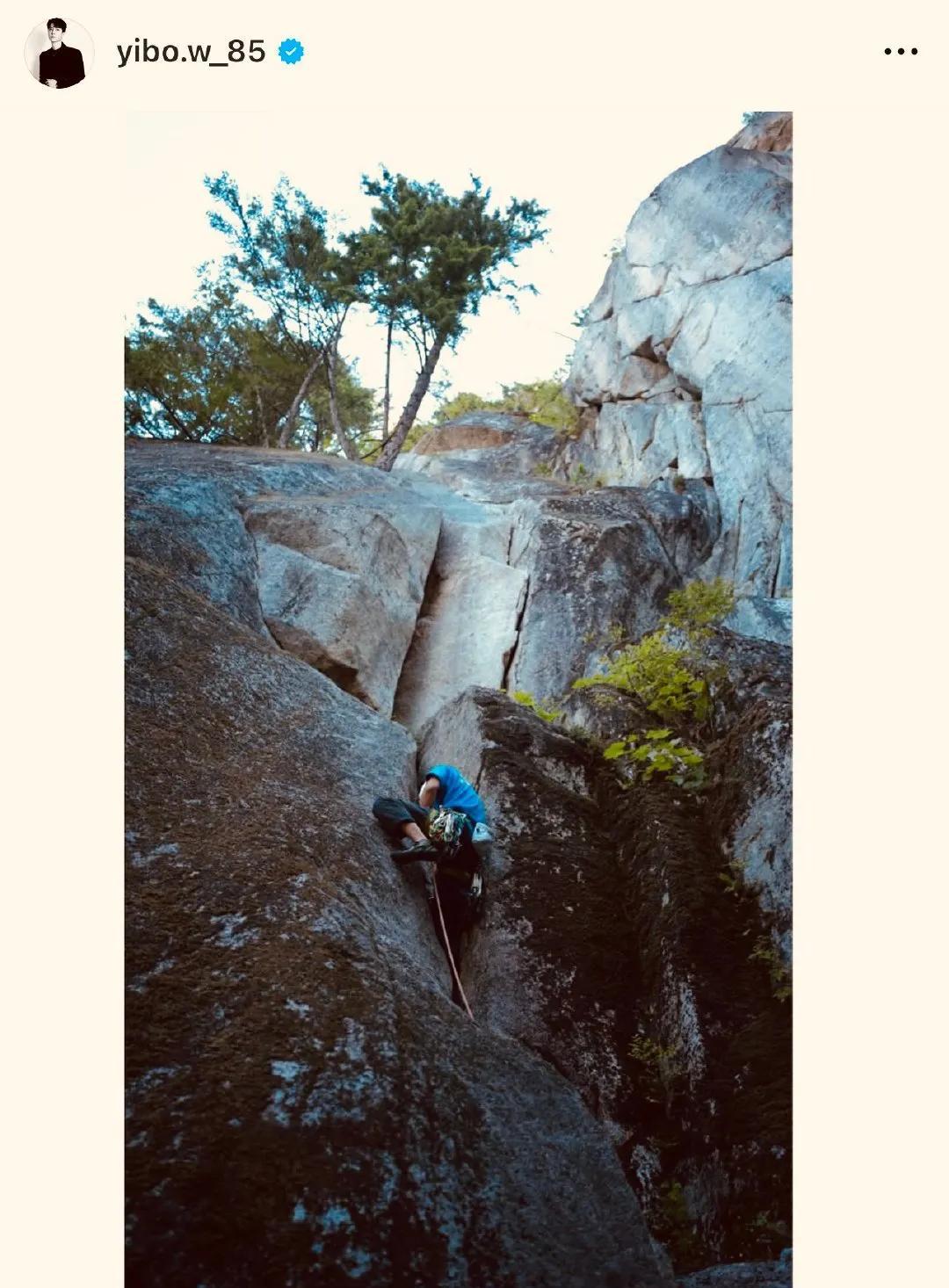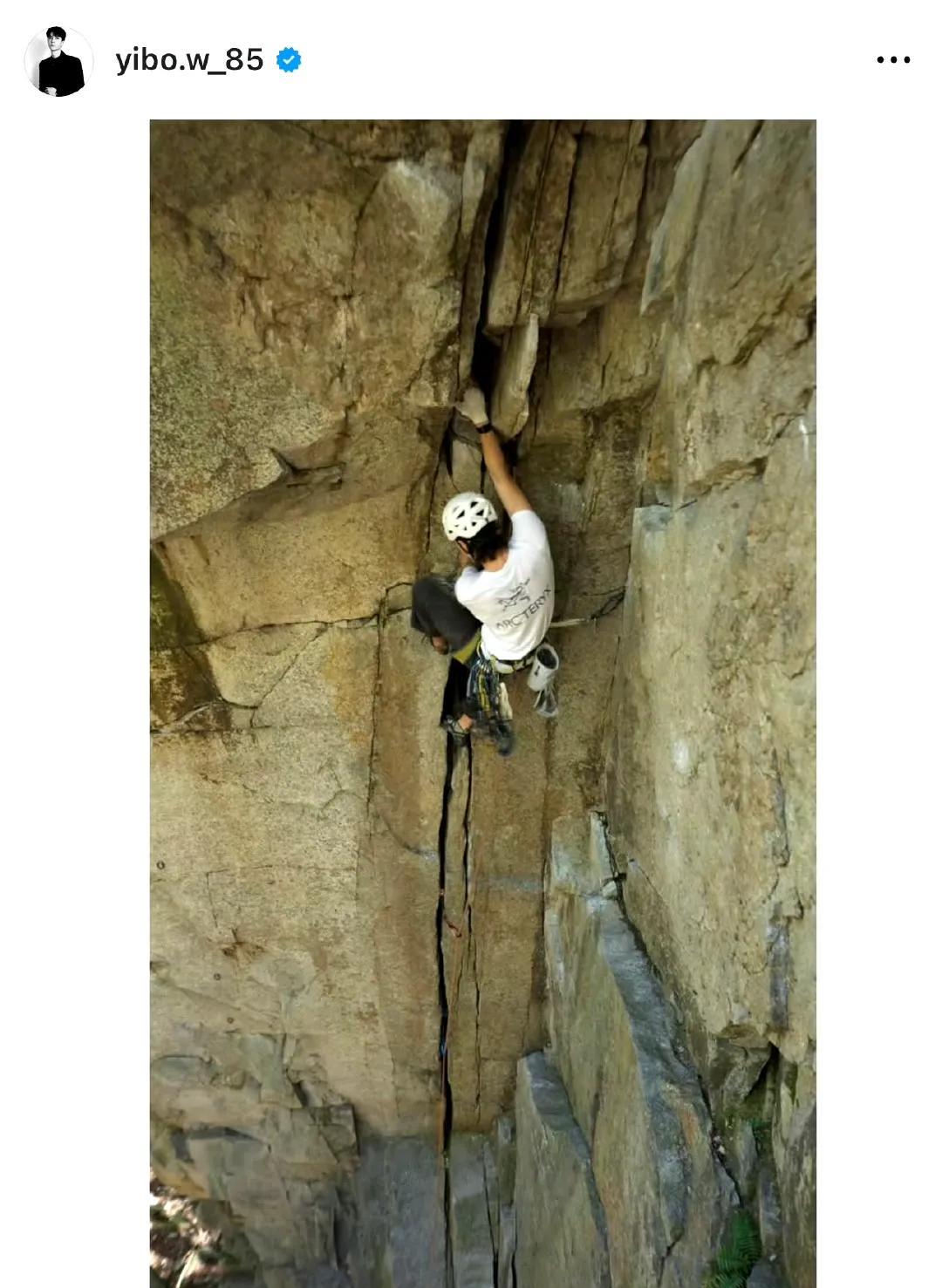 酷盖王一博ins更新12张高难度攀岩图片,看起来这些都是他非常满意的,貌似又解锁