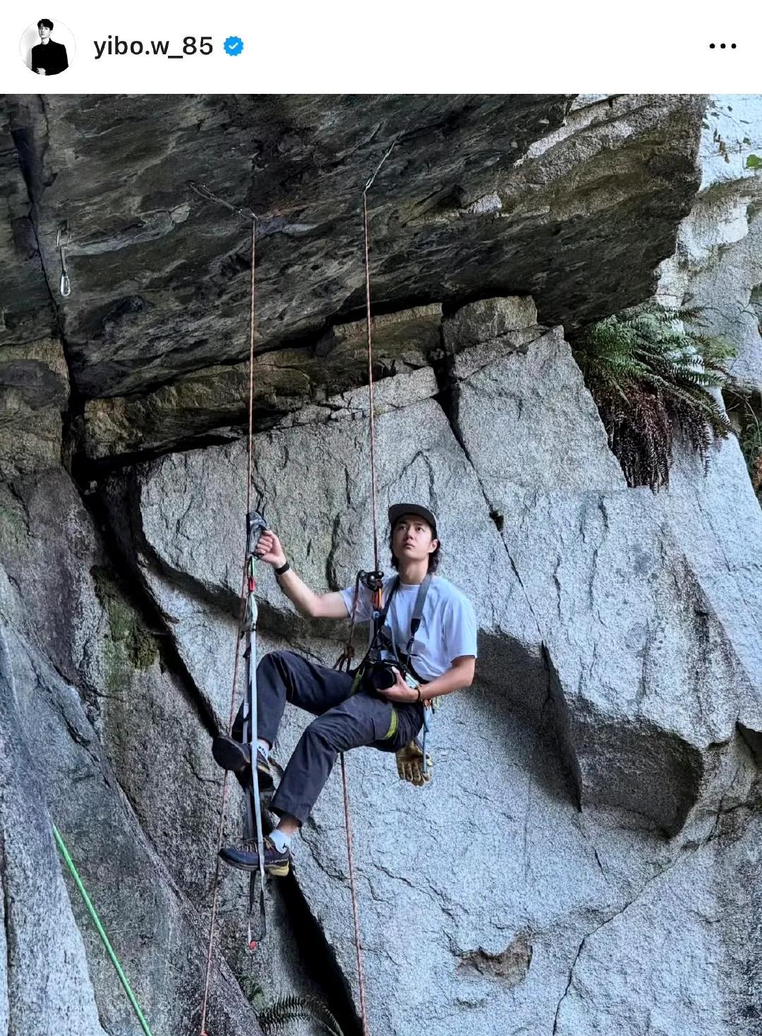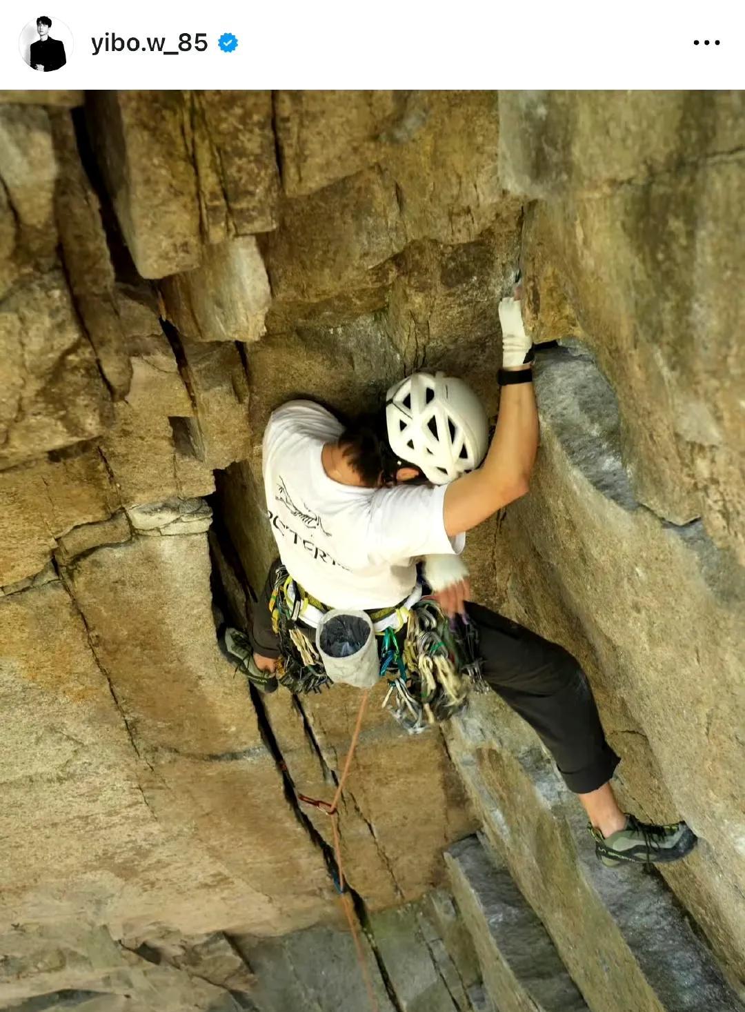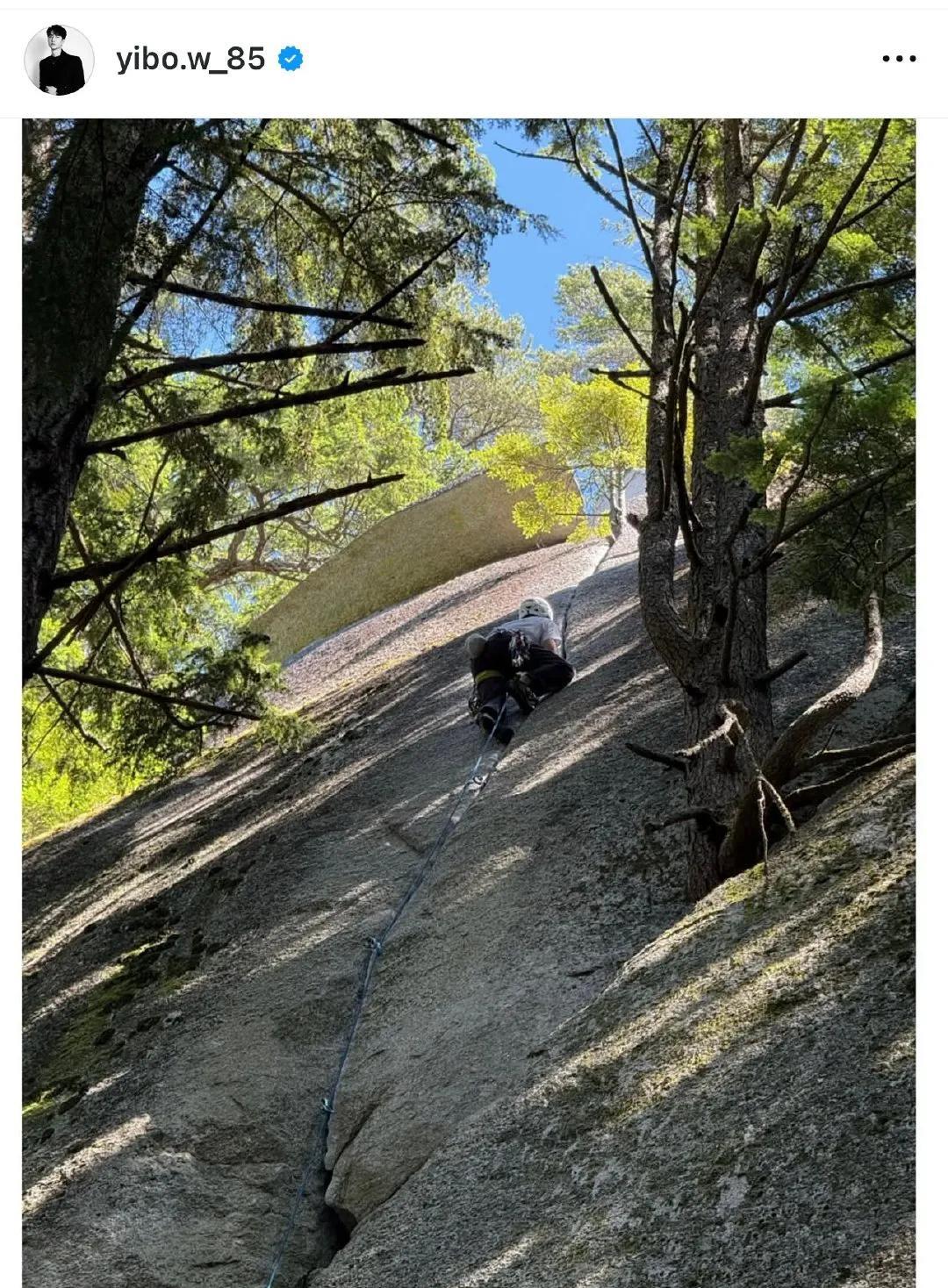 酷盖王一博ins更新12张高难度攀岩图片,看起来这些都是他非常满意的,貌似又解锁