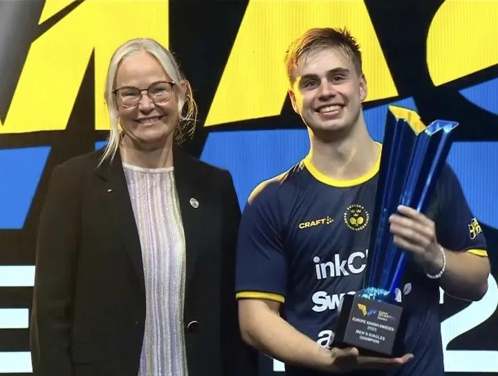 亚军不亚于冠军!林诗栋孤军奋战,离登顶只差两步 8月25日凌晨,WTT瑞典大满贯男单决赛,中国选手林诗栋对垒东道主选手莫雷加德。 第一局,短兵相接,互不相让。林诗栋7比5领先,反手扣球失误,失去扩大比分的机会。莫雷加德趁机反攻,连得4分,将比分反超为9比7。林诗栋以8比11憾负。 第二局,林诗栋4比1开局,被莫雷加德追成4比4。然后,战至7比7。林诗栋稳住阵脚,连拿3分,打成10比7。虽被莫雷加德化解第一个局点,林诗栋仍以11比8扳回一局。 第三局,战况白热化。4比4。双方压力增大,失误增多。先是莫雷加德失误送分,林诗栋一口气打到8比4。然后是林诗栋失误送分,莫雷加德将比分反超为9比8。9比9。10比10。莫雷加德在全场呐喊声中,两次暴扣得分,12比10险胜。 第四局,5比5,莫雷加德率先打破僵局,连得3分,打成8比5。林诗栋不甘示弱,追成7比8。莫雷加德暂停,效果明显,以11比8再下一城。 总比分1比3,进入第五局。林诗栋已无退路,迸发出惊人的战斗力。豁出去,拼上去,竟然打了莫雷加德一个11比4。 总比分扳成2比3,进入第六局。林诗栋10比8领先,掌握两个局点。莫雷加德连得3分,以11比10反超。林诗栋没有慌乱,拿下关键分,以13比11拿下。 熟悉的配方,熟悉的场景。又到了决赛局,又到了9比9。拼搏与幸运并存。最终,莫雷加德以11比9险胜。 远台对攻,均不放弃。林诗栋战斗至最后一刻,最后一球。林诗栋的亚军不亚于冠军。此时此刻,“虽败犹荣”真不是一句套话、一种安慰。一个细节,让人感动。王皓轻抚林诗栋的后背,感到欣慰。 本届赛事,林诗栋身兼三项,斩获一金两银,标志着已走出低谷。 感谢林诗栋的付出,感谢林诗栋的奋战。