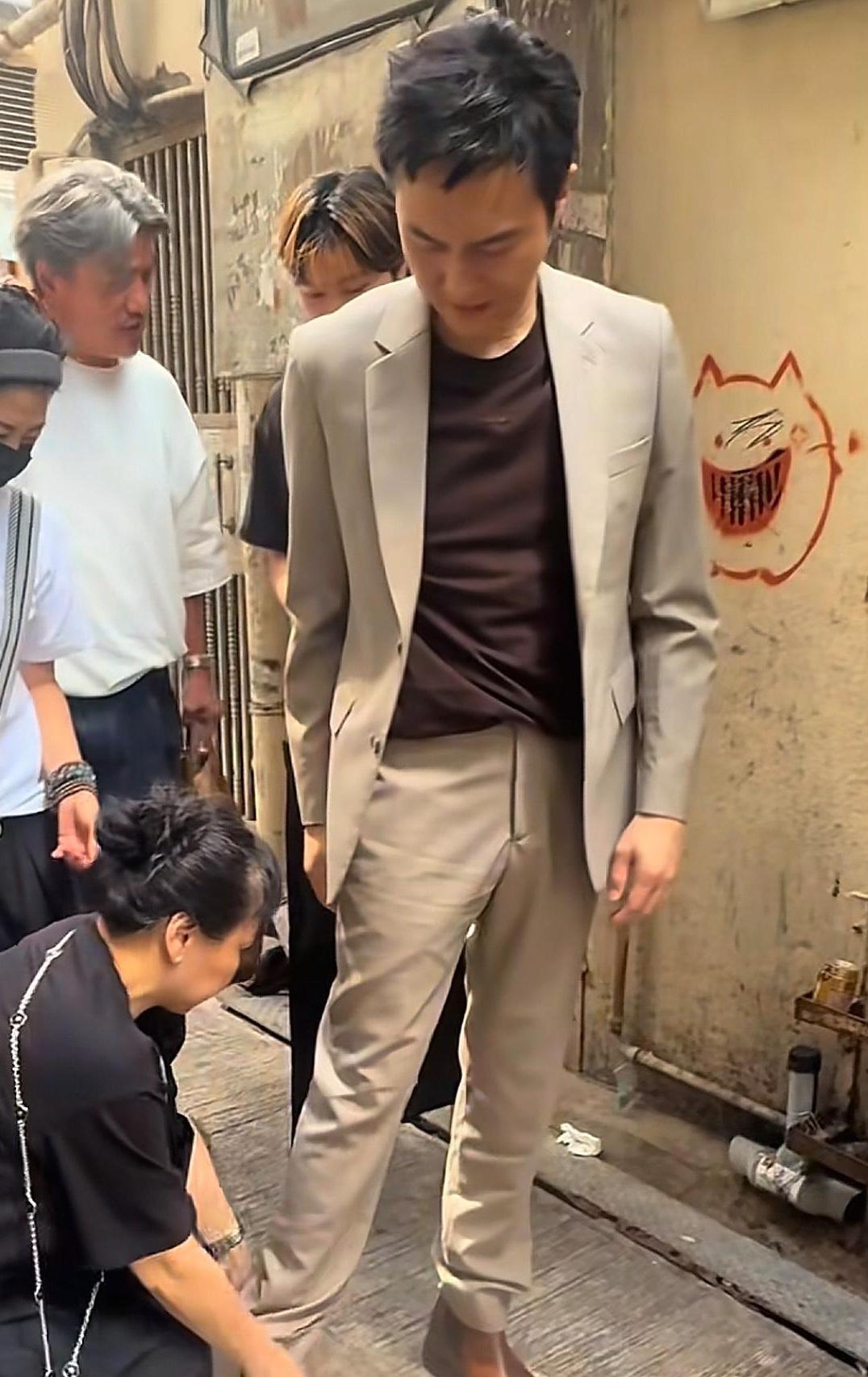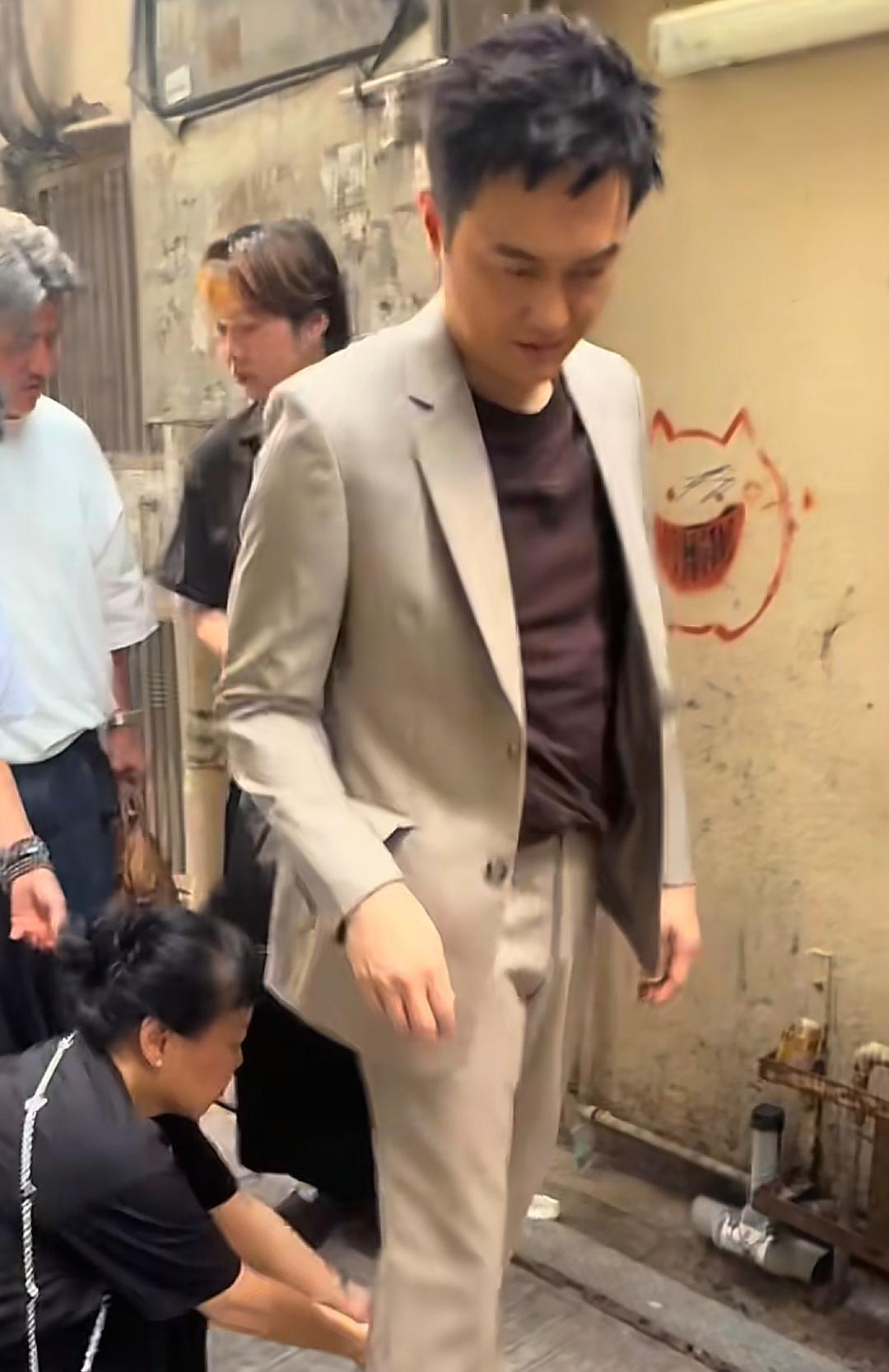 张智霖在香港出席活动,助理阿姨蹲下身子为他整理裤脚,看起来好大牌,打工人真的太惨