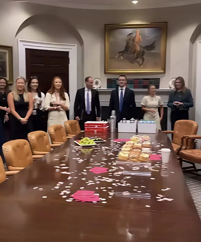 美国的政府工作人员也是懂人情世故的。白宫发言人卡洛琳·莱维特28岁生日,她的同事