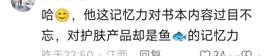 我们的彪哥也是出息了,竟然用上了贵价化妆品[我想静静][我想静静]不过当他说出化妆品的品牌名字时,大家笑得前仰后合!彪哥还说出了更扎心的真相 昨天董宇辉参加完《北京范儿》的活动之后,又空降兰知春序直播间,跟潇潇聊起了家常。 潇潇正在卖化妆品,董宇辉说自己也买了一款叫海之蓝的护肤品,不过自己觉得没有什么用。 潇潇一脸惊愕:你确定海之蓝是外敷的?人家海之蓝是喝的,外敷会不会有点蒸发得太快?[我想静静][我想静静] 彪哥此时意识到自己可能说错了,大脑瓜迅速转起来,但还是有点不确定:好像是叫海蓝,不对,是叫海洋…… 身边的导演马上给予提示:海蓝之谜。 要我说彪哥就是彪哥,人家内核强大,根本不屑于用什么护肤品化妆品之类的。要不然以他超强的记忆力,一晚上一本书都能记得住,怎会记不住化妆品的名字呢?只是心思不在这上面而已。 不过话说,海澜之家,海之蓝,海洋之谜这几个跨界品牌的名字确实有点让人傻傻分不清。彪哥已经不是第1次闹笑话了。 更让人哭笑不得的是,人家在卖化妆品,他竟然说自己用过的化妆品没啥用。[我想静静][我想静静]直男无敌了。 不过这对于彪哥来说已经是大幅度的尝试了。谁还记得以前他看前同事yoyo化妆那一脸嫌弃的表情,确实也能够理解,人家上大学还在用青蛙王子的面霜呢[我想静静][我想静静]