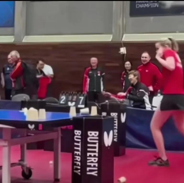 国乒在“瑞满”后参加丹麦乒乓球活动,个个哈哈大笑,好不开心啊! 莎莎就是开心果,