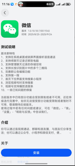 鸿蒙微信1.0.10.18白天推送邀请,直接增加9个功能,真的千呼万唤始出来,锁屏终于能接语音了,小程序也能搜索🔍了。#鸿蒙微信# #鸿蒙NEXT#